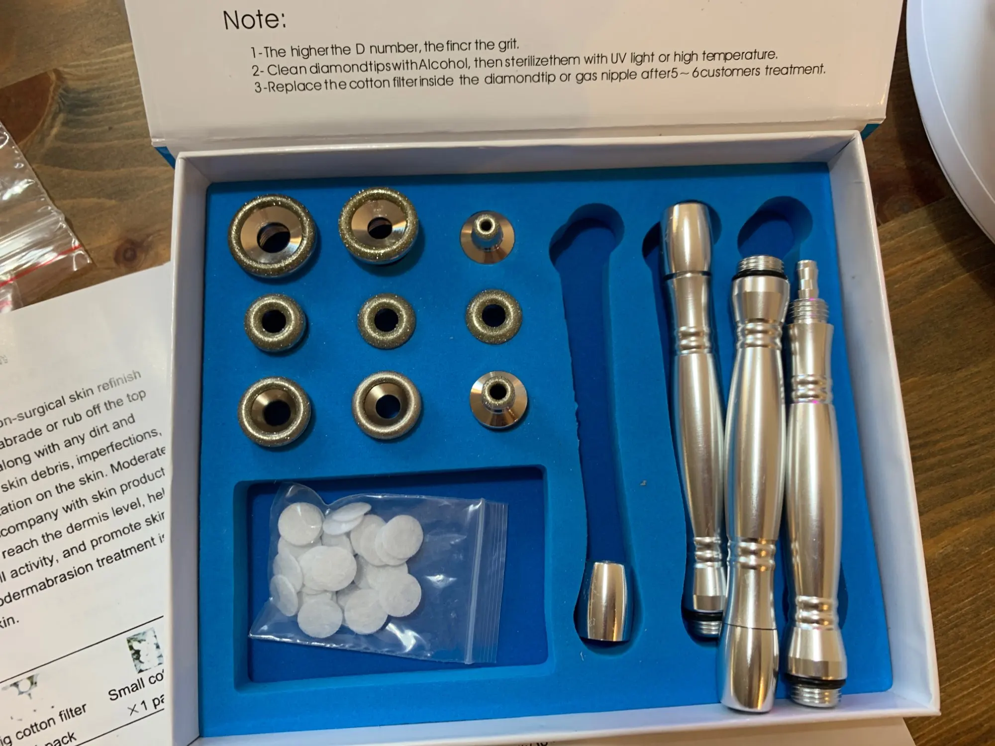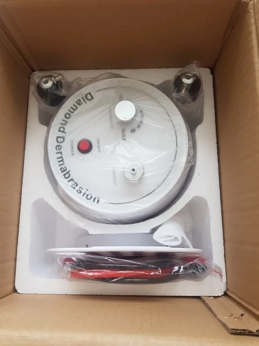 Fast delivery, excellent packaging. Item as described in perfect working condition. Tried the treatment and works very well. Strong suction, great quality device all around. For the cost of one treatment you can have your own salon quality micro dermabrasion device! Thank you seller.