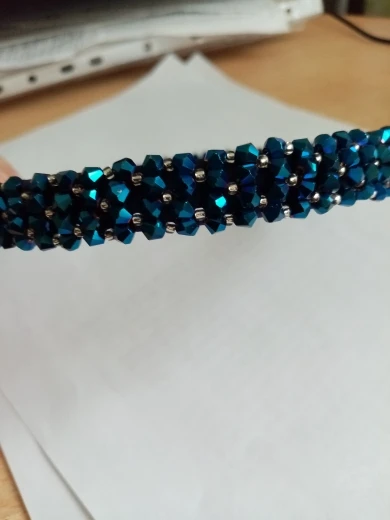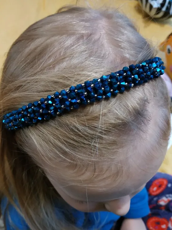 Очень красивый ободок. Искрящиеся на свету переливы бусинок делают его поистине потрясающим аксессуаром для волос. Доставка заняла около 14 дней. Не первая покупка в этом магазине. Всегда без нареканий по качеству, упаковке и срокам. Рекомендую.