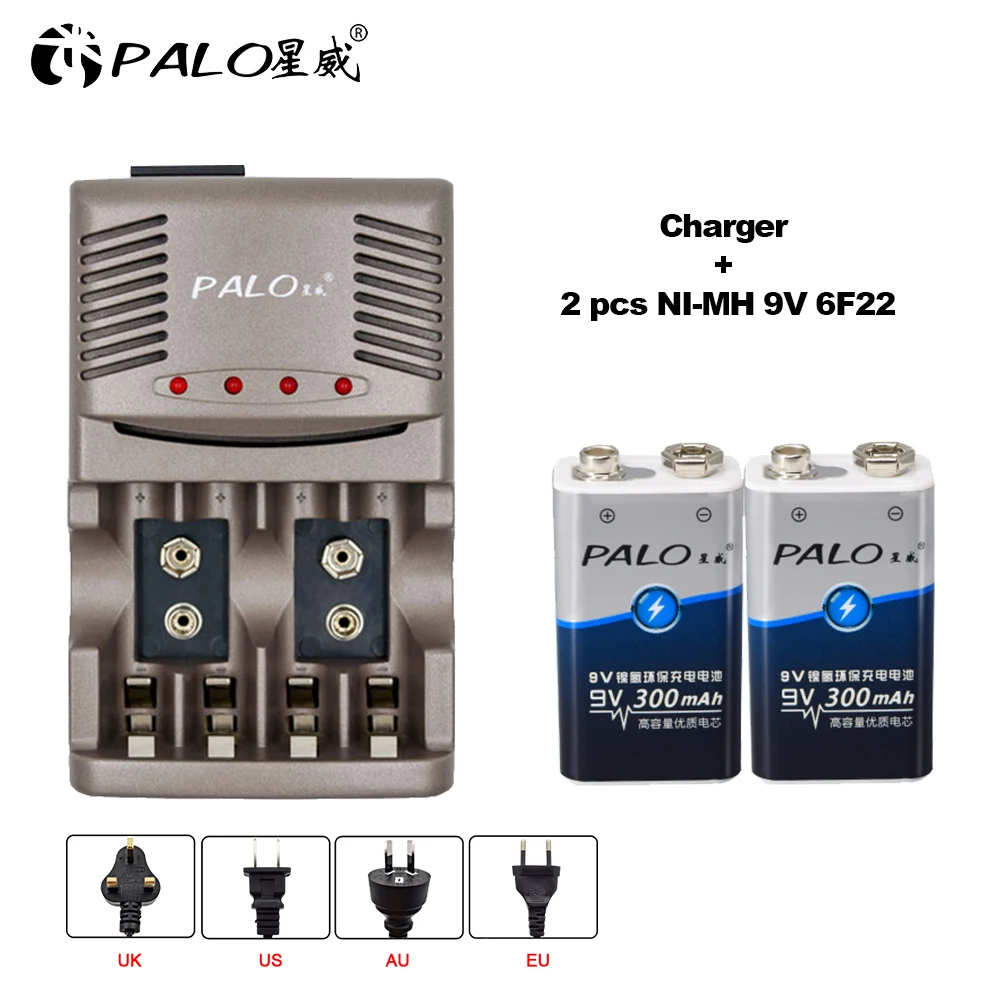 Умное зарядное устройство PALO для никель-металлогидридных аккумуляторов AA, AAA, 9 В, 6F22, 2 аккумулятора 9 В, 300 мА ч, для микрофона
