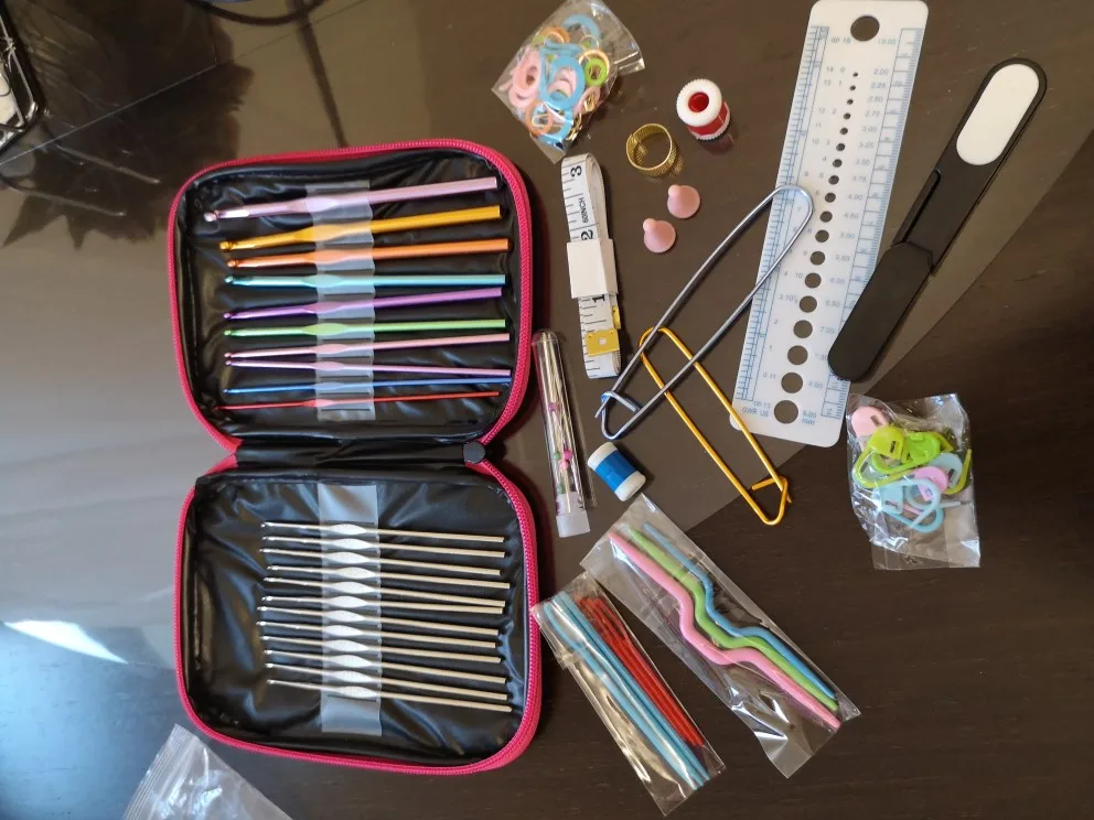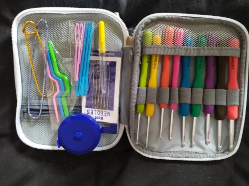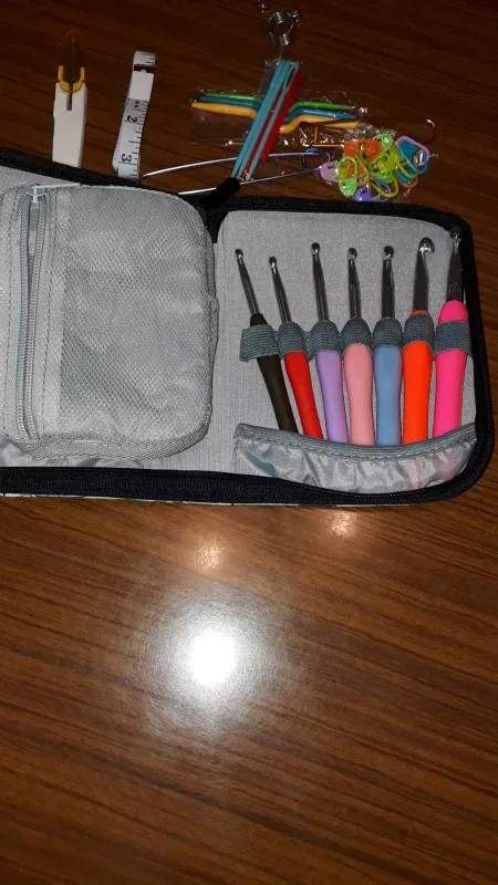producto muy completo. muchos accesorios para poder realizar manualidades como peluches amigurumi. un poco lento el envio