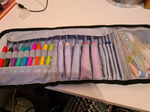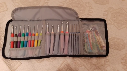 Быстрая доставка в постамат. Качество хорошее. Чехол для крючков аккуратный, молнии рабочие. Крючки металлические размер от 2 до 8, с силиконовой ручкой от 2 до 6.
