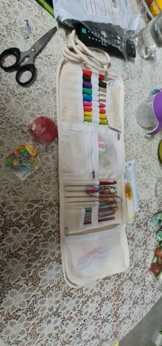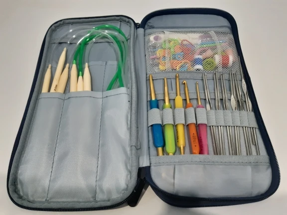 Очень хороший набор для вязания. Сумочка с двумя отделами на молниях. Такой и подарить не стыдно рукодельнице. Довольна покупкой. Продавца рекомендую.