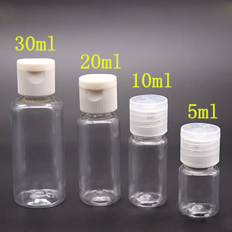 5 шт. 5 мл 10 мл 20 мл 30 мл пластиковые ПЭТ прозрачные флаконы с откидной крышкой для лосьона контейнер для косметических образцов дорожная жидкая крышка заполняющие флаконы