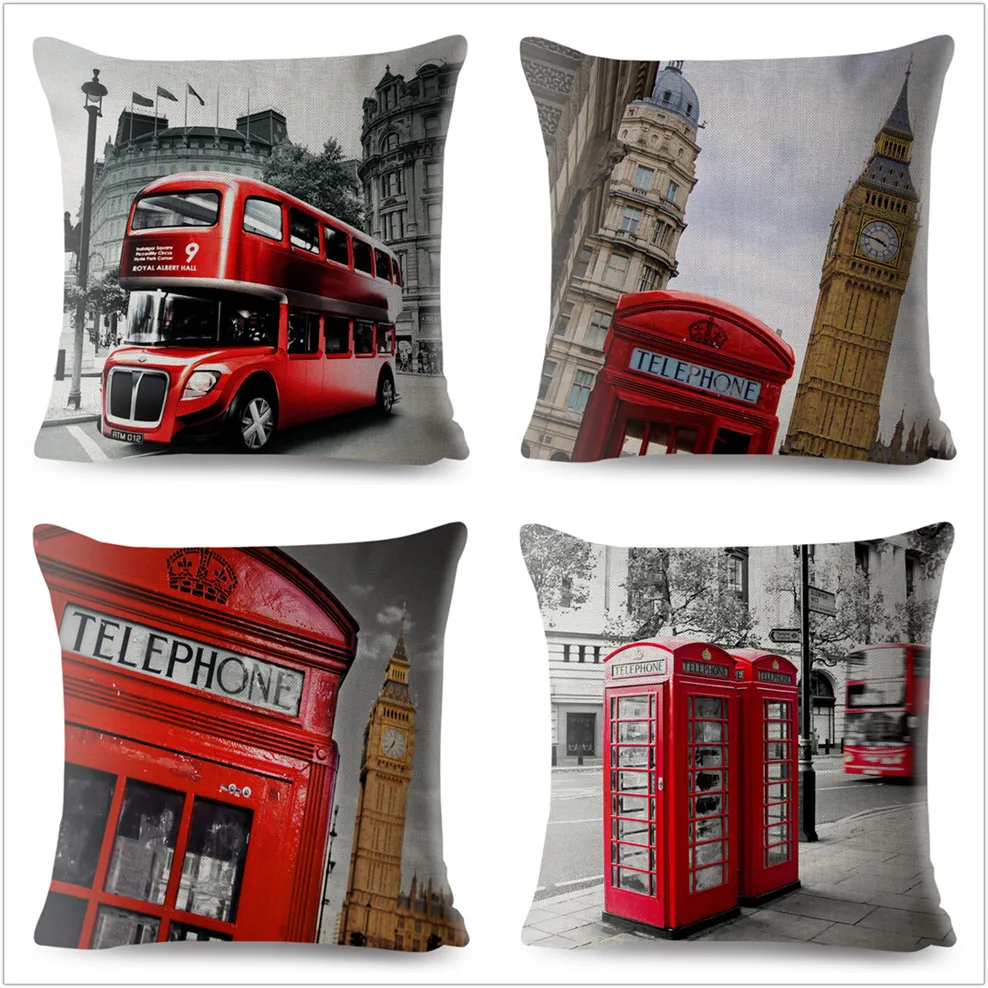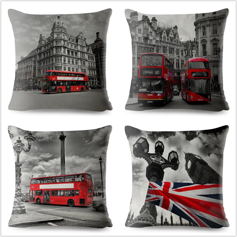 Красный Лондонский автобус чехол для подушки с принтом бежевая льняная наволочка 45*45 см квадратная наволочка для дивана наволочка для домашнего декора