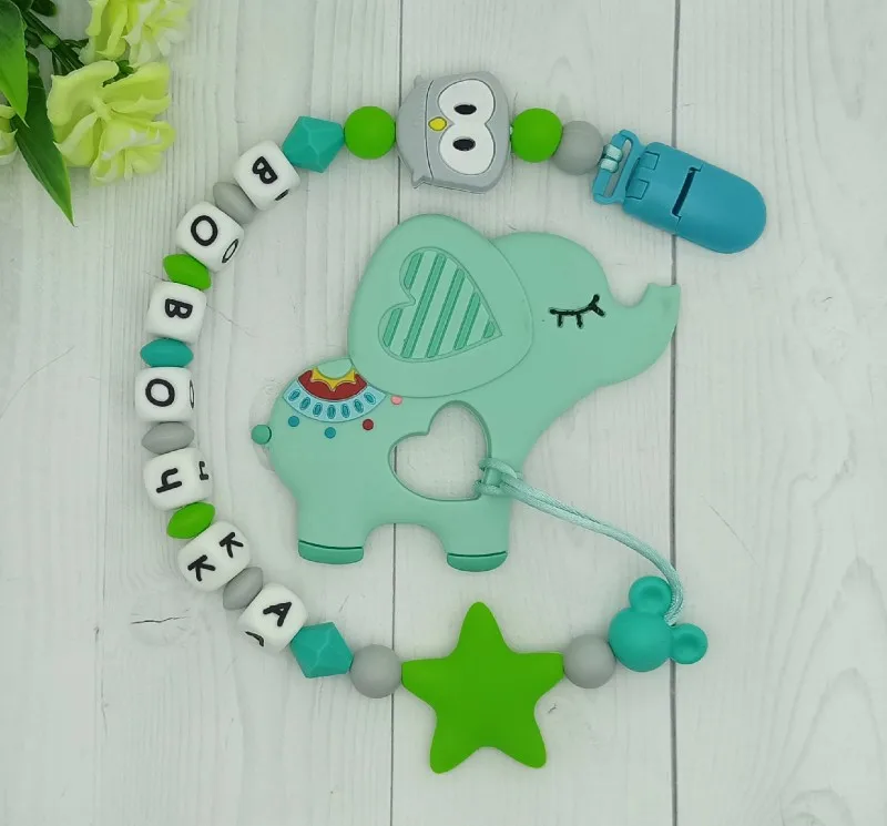 Зажим для прорезывания зубов, из пищевого силикона, с именем сделай...
