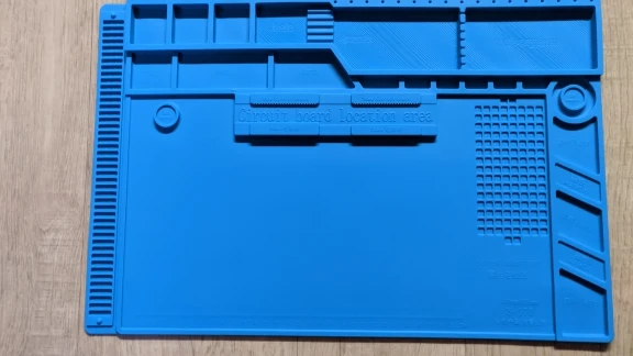 Товар пришел за 1,5 месяца. Упаковано хорошо. Отслеживался. Коврик эластичный. При пайке до 280 градусов почти не изменяет форму, при более высокой температуре меняет форму и при остывании восстанавливается изначальная форма. По столу не скользит. Плата по коврику не скользит. Запаха нет. Товар и продавца рекомендую.