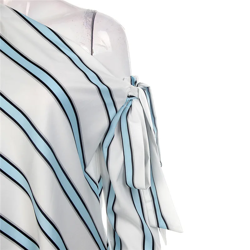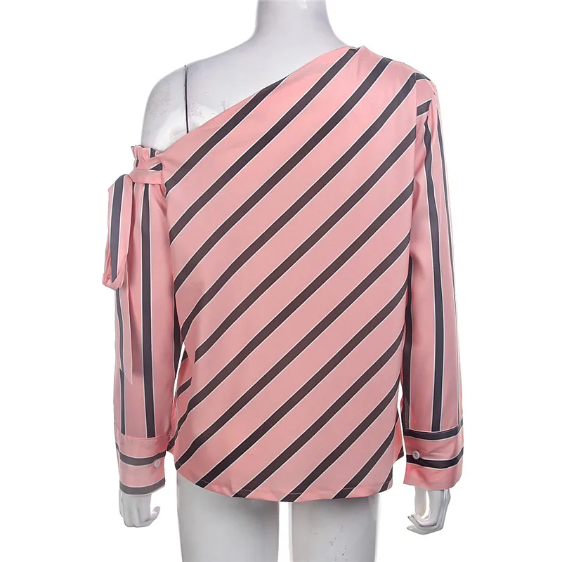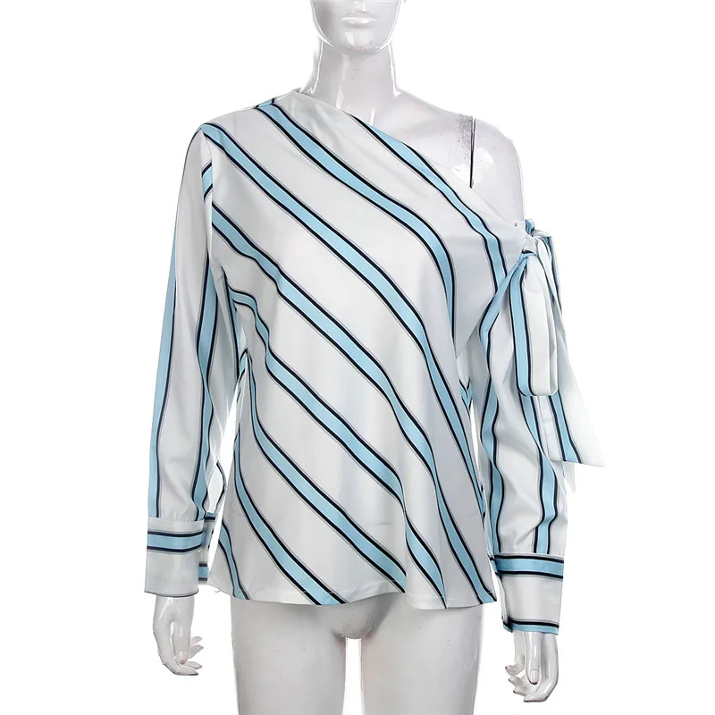 Летняя женская новая полосатая Свободная блузка, модная женская рубашка с открытыми плечами на шнуровке, женские элегантные топы, блузки, шикарная рубашка с длинным рукавом