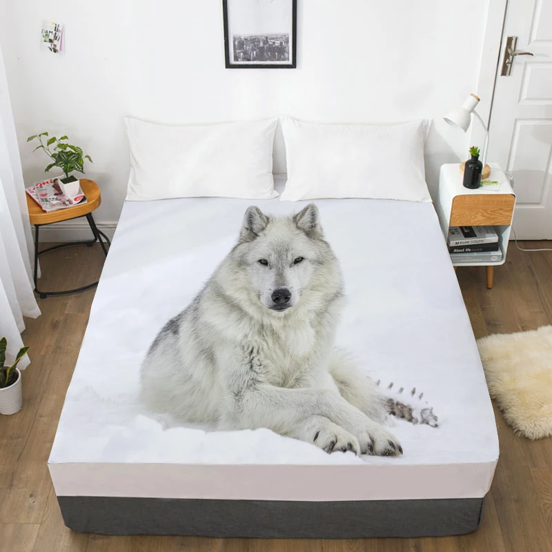 Простыня с 3D принтом на заказ, эластичная простыня QueenKing, наматрасник с изображением белого волка, 160x20 0150x200, Прямая поставка