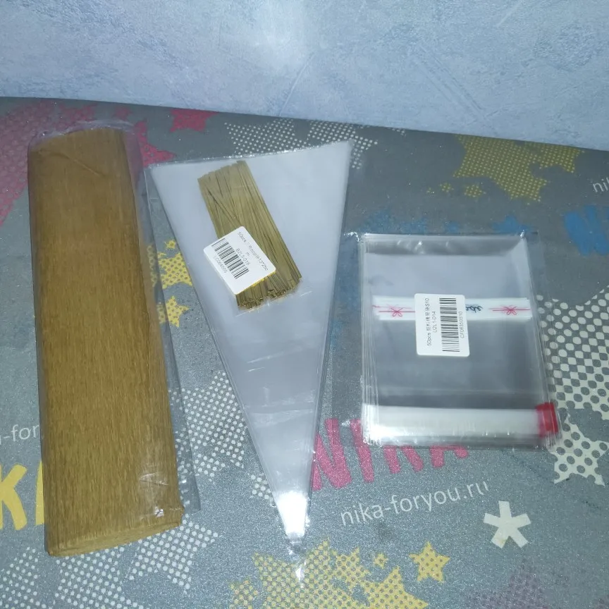 50 шт., 3 размера, прозрачные целлофановые конусные мешки, золотые ...