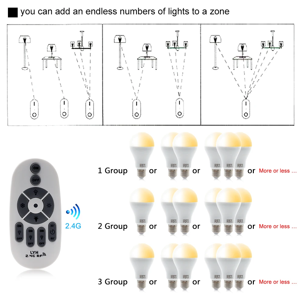 Группировка:Сочетайте лампы с любой группой, три группы каждой группы могут соответствовать нескольким светильникам.