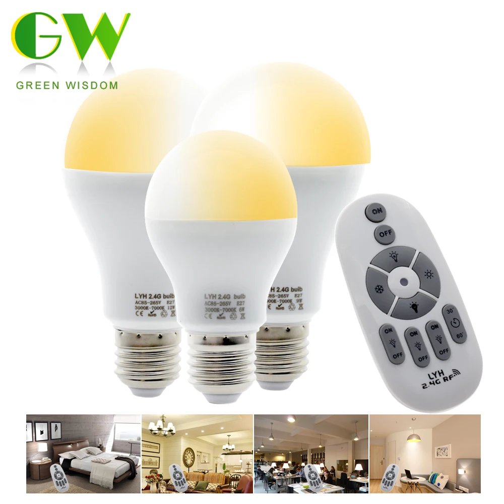 Умные Светодиодные лампы E27 AC86-265V 6 W 9 W 12 W теплый белый холодный белыйПрожектор wСветодиодный ночник с дистанционным управлением ith RF 2,4G