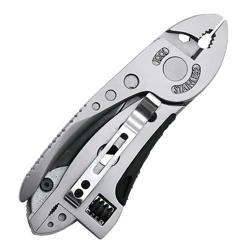 Особенности: Портативный дизайн, компактный и компактный, очень удобный в использовании. Эргономичная ручка, легкая и прочная, нескользящая ручка, удобная для захвата. Гуманизированная кривизна, овальная радиальная конструкция, удобная ручка, эффективная противоскользящая. Изготовлен из высококачественной нержавеющей стали, тонкой обработки, не ржавеет, практичный и прочный. Мульти инструменты с пилой, гаечным ключом, плоскогубцами, гаечным ключом и отверткой, которые могут сэкономить место. Улучшенная износостойкость, хороший помощник упражнений на свежем воздухе и дома. Лезвие можно открыть и закрыть одной рукой с помощью слота лезвия. Характеристики: Тип: плоскогубцы Материал: нержавеющая сталь Цвет: серебристый Количество: 1 шт. Размер: 122*44*11 мм/4,8*1,7*0,4" Вес нетто: 160 г/5,6 унций Посылка: 1 * многофункциональные плоскогубцы