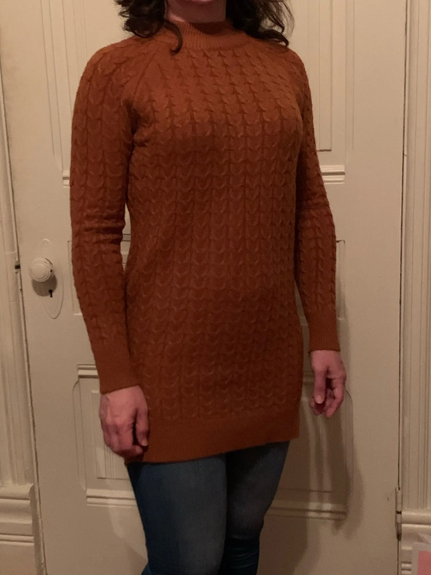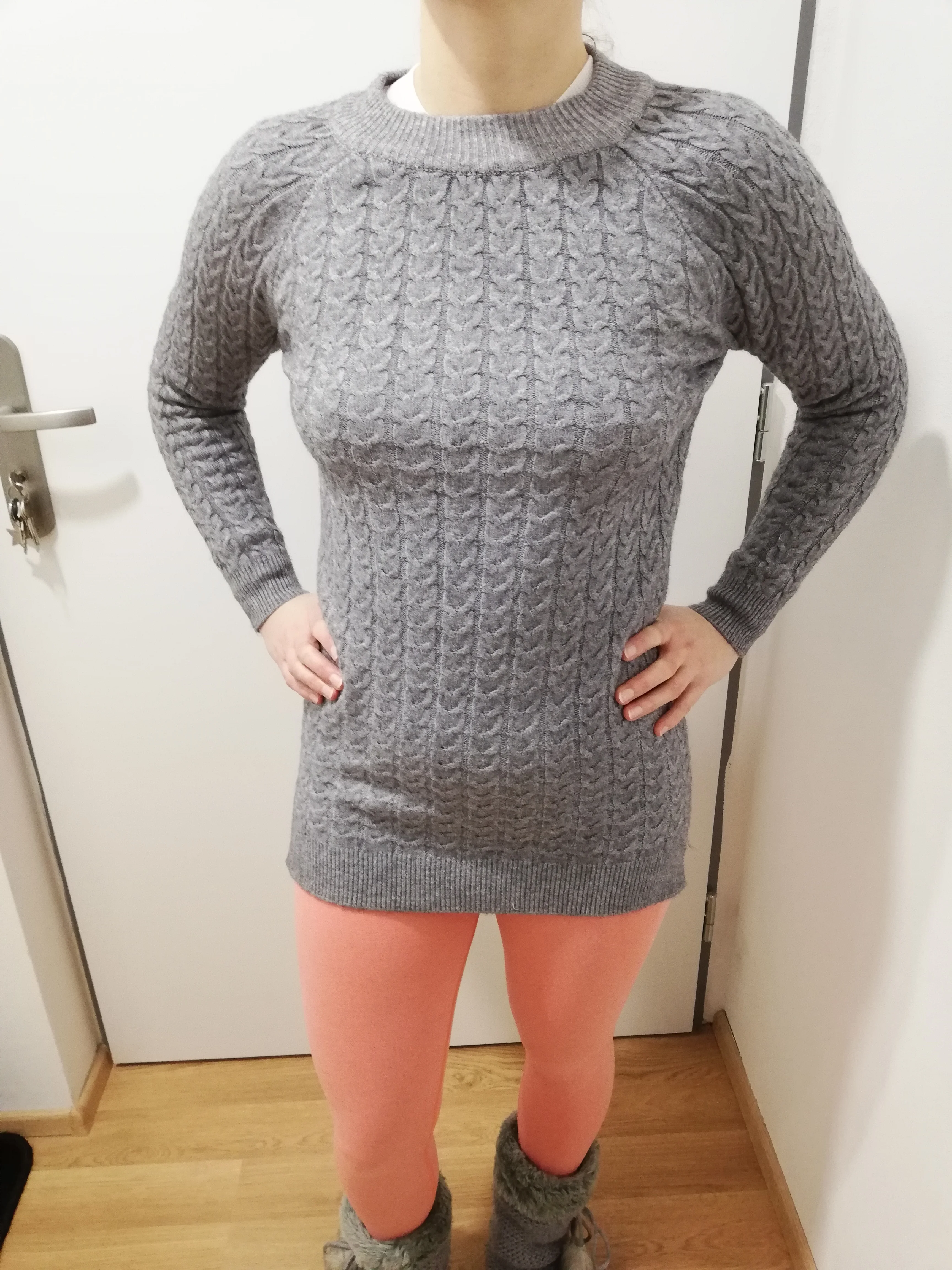 Мне очень нравится прикосновение ткани. Цвет и форма. Немного разочаровался, потому что я размер Довольно маленький и не использовал в платье! Обычный Свитер