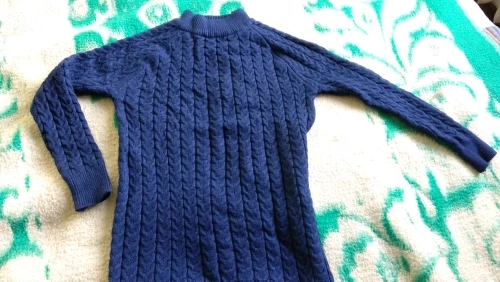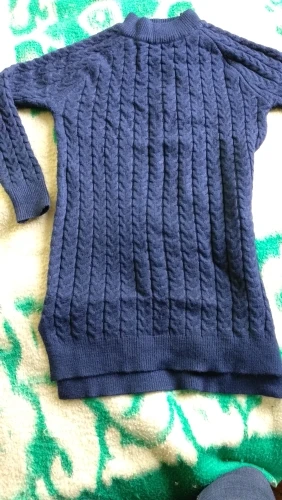 Свитер классный. Взяла ещё один розовенький дочери. Она довольна. Да и кто откажется от подарка да и ещё хорошего качества. Я одеваюсь на али. Это намного дешевле и качество не хуже чем на рынке. А почти всегда даже лучше. Один минус не пощупаешь перед покупкой. Штаны вот купила а они гамно. Жаль денег.