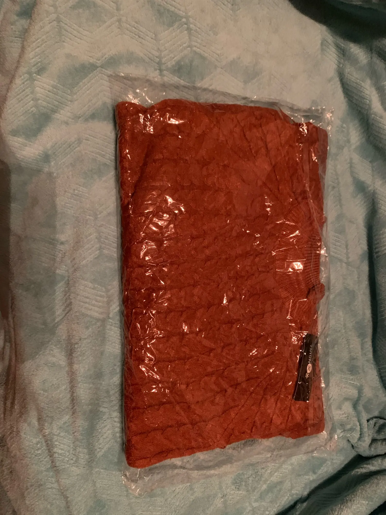 Странно, размер М выглядит как XL, отдам маме! Пришел быстро и мягкий!