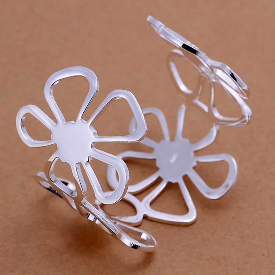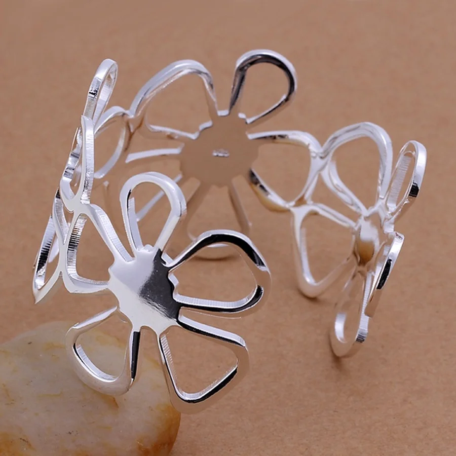 Акция, высокое качество, ювелирные изделия из стерлингового серебра 925 пробы, модные круглые цветы Открытый браслет для запястья для женщин, свадьба