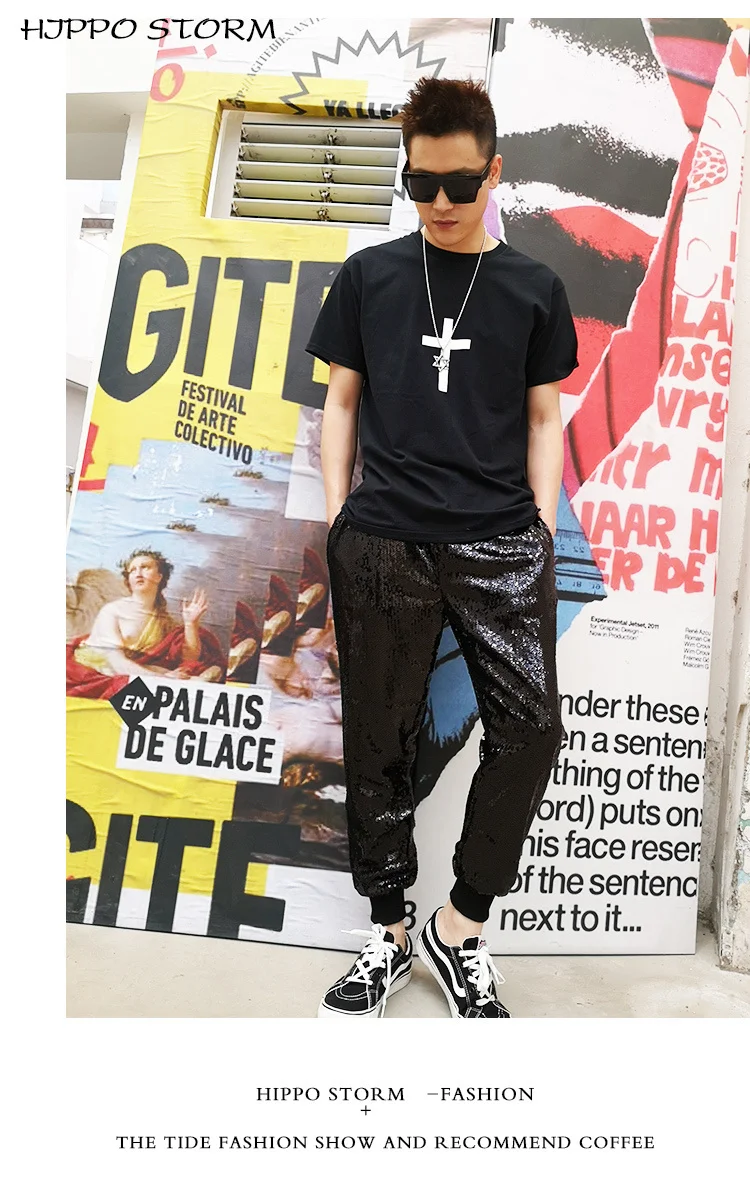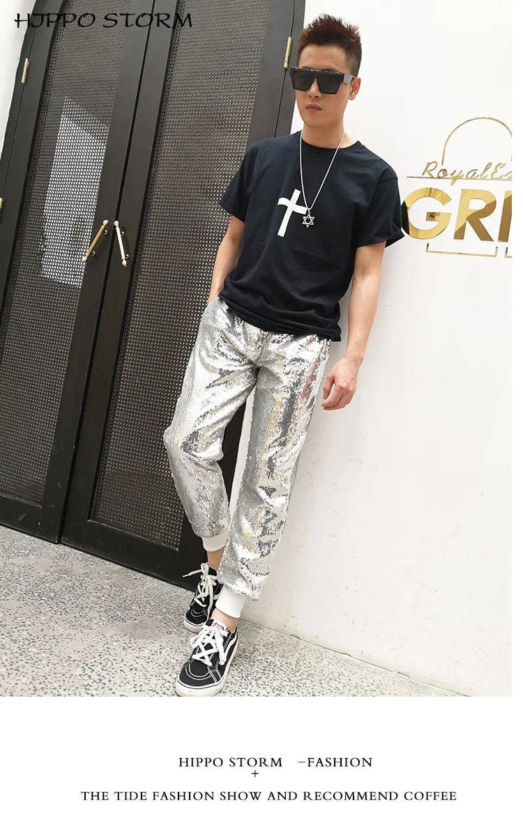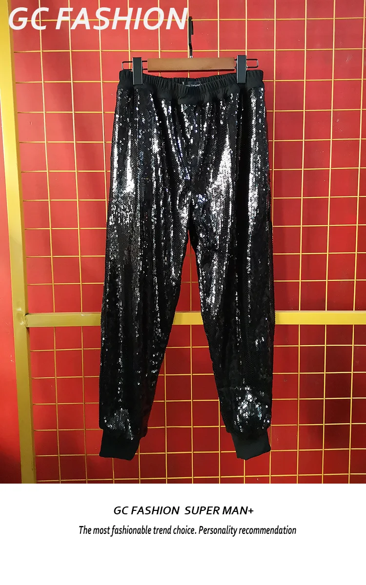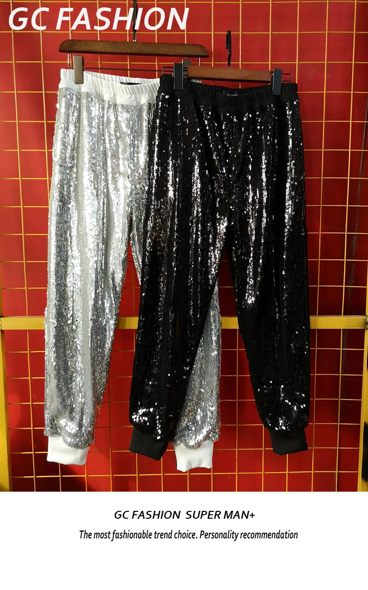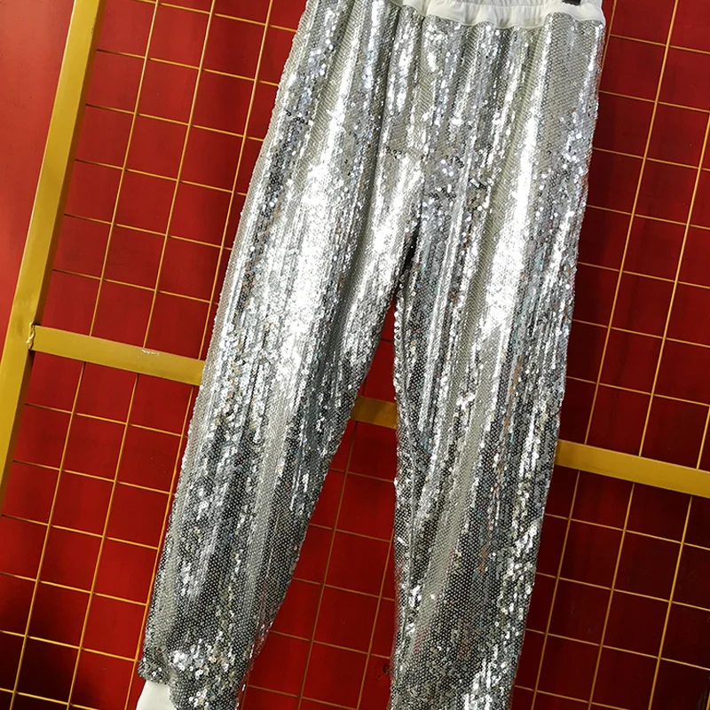 Брюки мужские, с блестками, для выступлений, ночного клуба, для певицы, повседневные, для весны, 2019