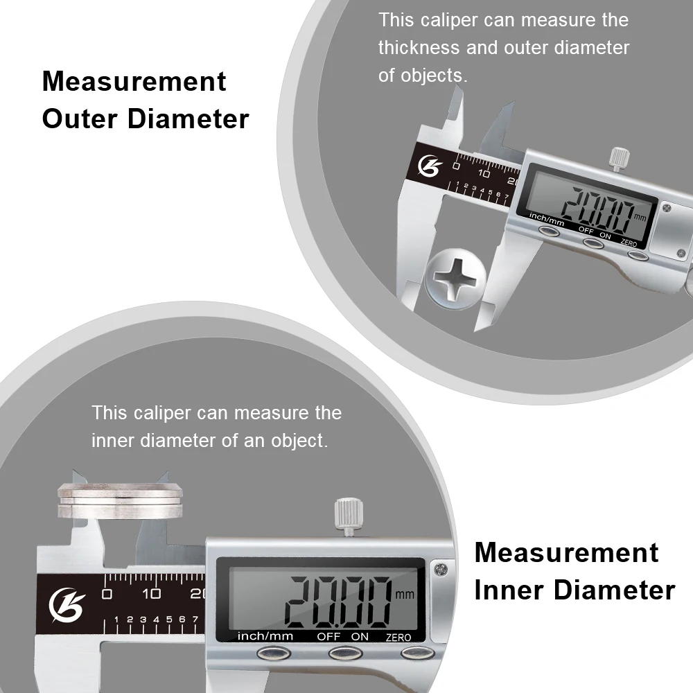 Штангенциркуль цифровой из нержавеющей стали, 6 дюймов, 150 мм