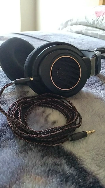 Я настоятельно рекомендую этот кабель. На ощупь абсолютно отлично. Они толстые и красивые. Наденьте их на мой X2HR и SHP9500, это дает более профессиональный вид наушников. Абсолютно потрясающе, особенно по цене. Это один из самых дешевых, но хорошо выглядящих наушников на aliexpress