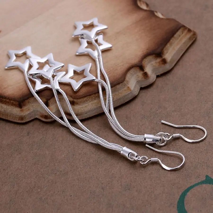 Серьги женские из серебра 925 пробы, Классические Вечерние со звездами