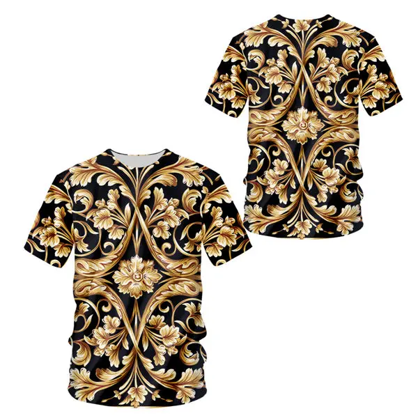 Мужская футболка с коротким рукавом, Винтажная футболка с цветочным принтом в стиле барокко, Повседневная Уличная одежда, 4XL, размера плюс