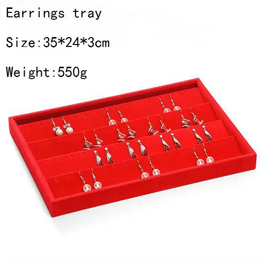 Большая красная бархатная шкатулка для ювелирных изделий, органайзер для колец, витрина, полка для ожерелий, сережек, подставка для хранения браслетов, оптовая продажа