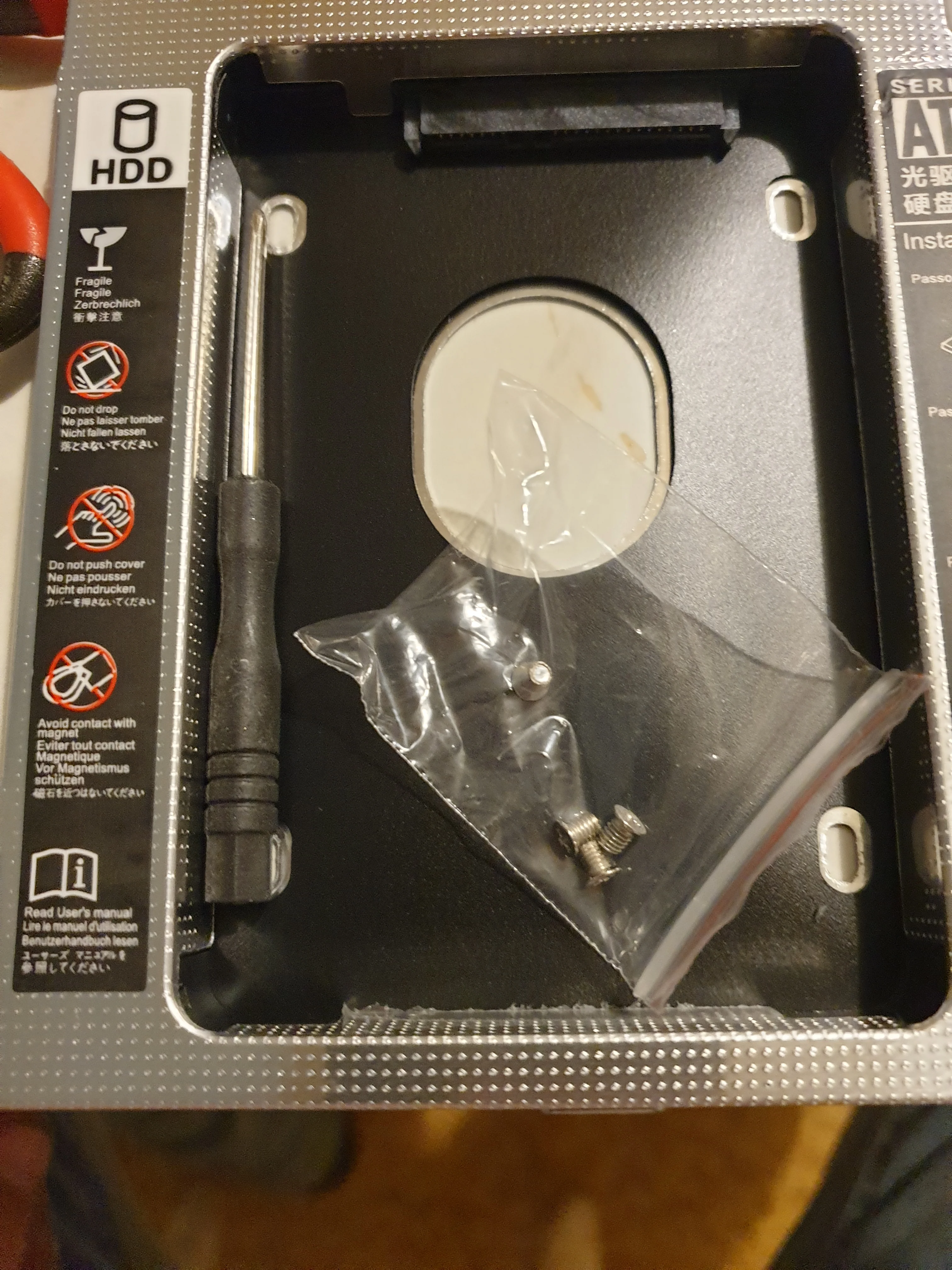 очень быстрая доставка - до Челябинска 12 дней! в комплекте отвертка, болтики, заглушка (оставила родную), встал на место CD-rom`а прекрасно! ноут HP Pavilion 6, с ssd диском ноут "взлетел" ))) с продавцом не общалась, но рекомендую!