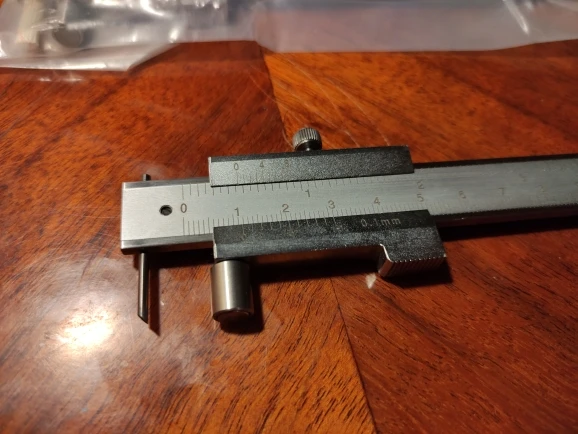 Тело не очень хорошо обработано, это не полностью параллельно, что делает настройку вернира лардона трудно. Но поскольку мы не принимаем меры, это приемлемо, Твердосплавный стержень практичен, он позволяет отмечать даже очень твердые поверхности. Если ролик может разобрать и сделать наконечник, трансформация в компасы для рисования кругов будет чудесной.