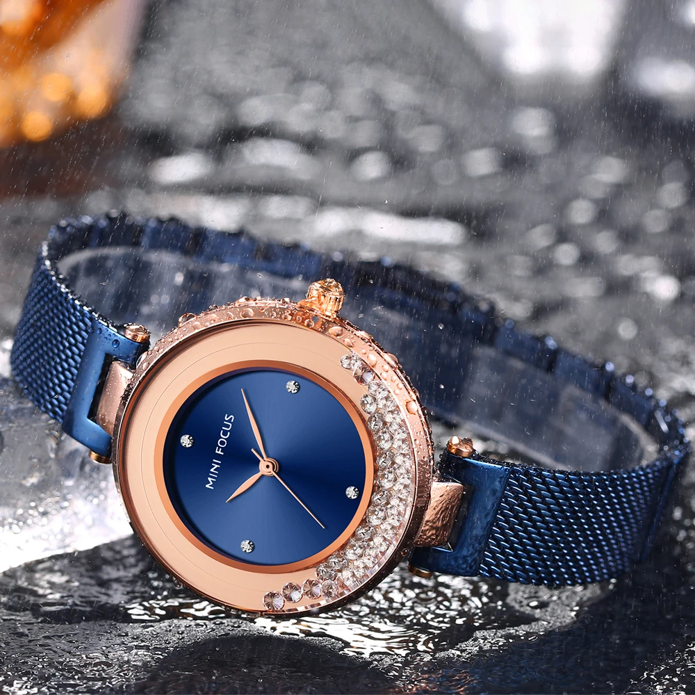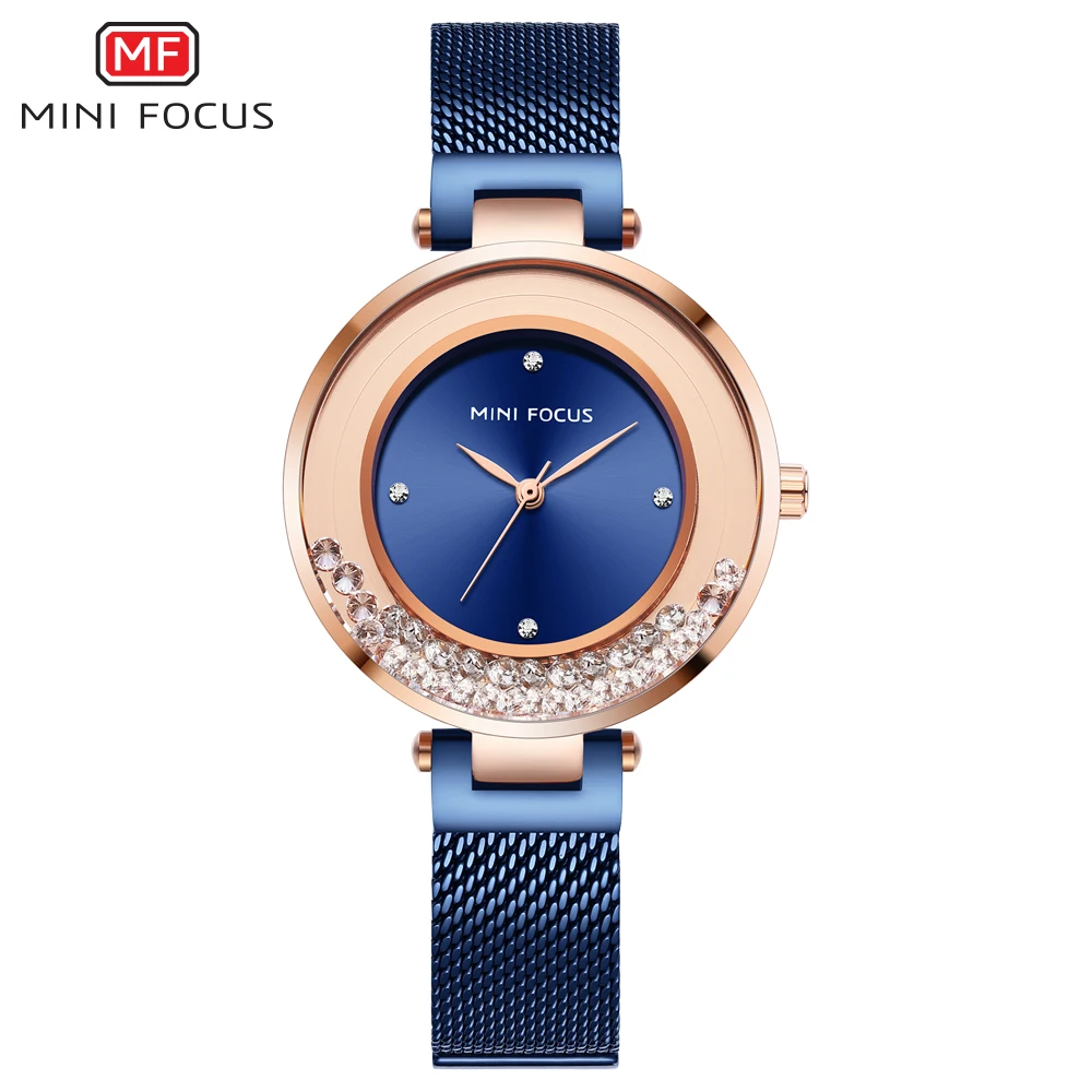 Женские часы MINI FOCUS, роскошные брендовые модные повседневные женские часы, кварцевые часы со стразами, наручные часы для женщин, синие часы