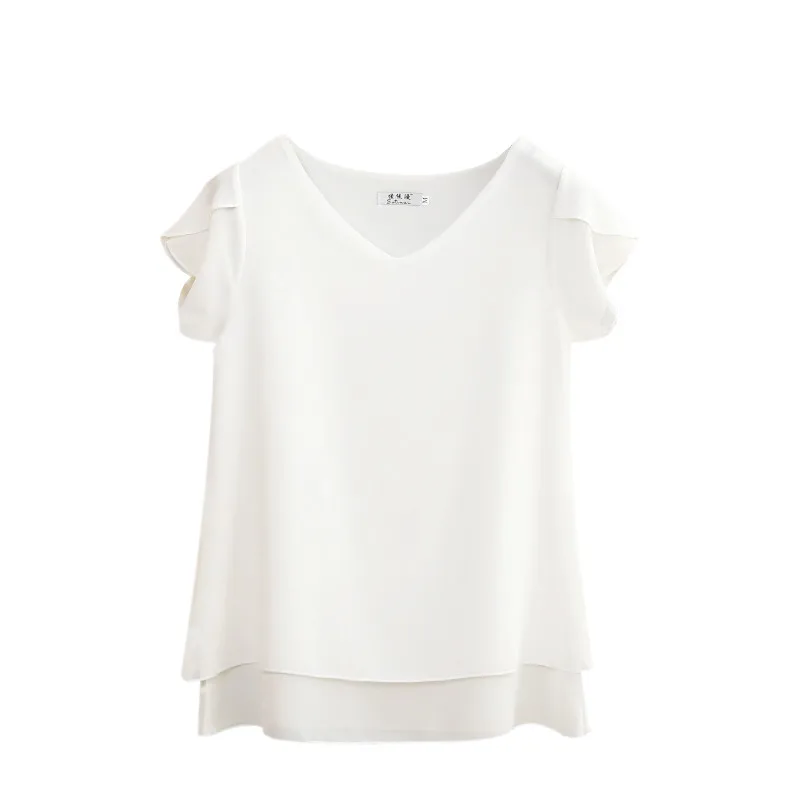Модная брендовая женская шифоновая рубашка 2020 лето с V-образным вырезом и короткими рукавами, блузы свободного покроя 9 сплошной цвет свободные женские топы