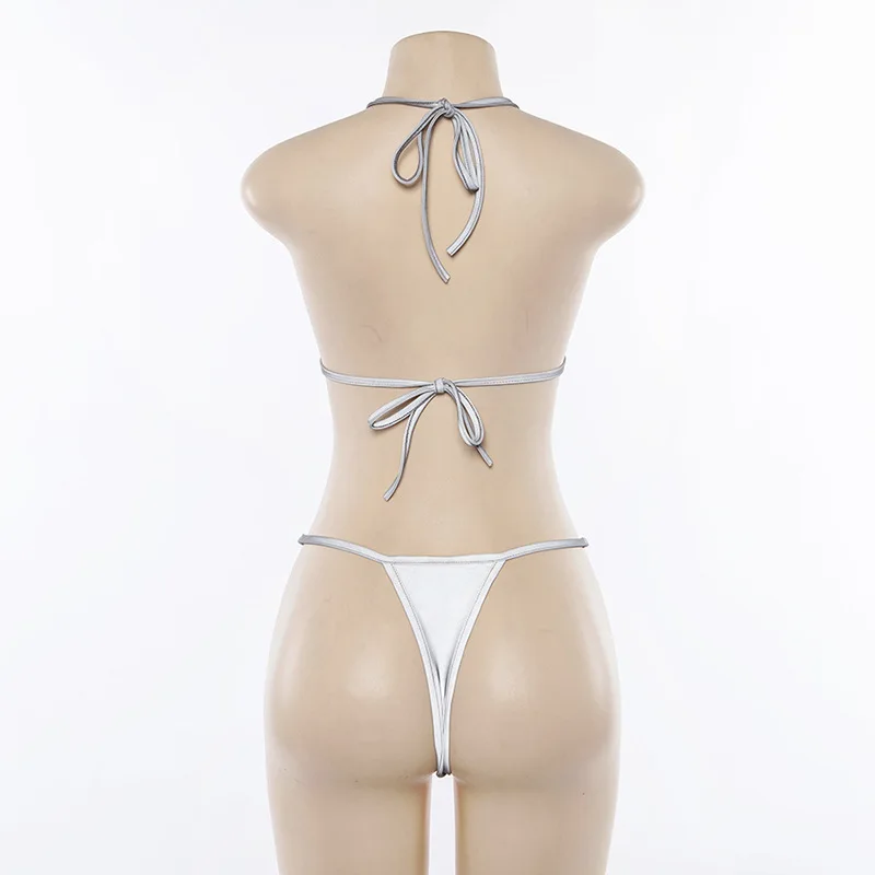 Комплект нижнего белья женский, бикини со светоотражающими вставками, пуш-ап