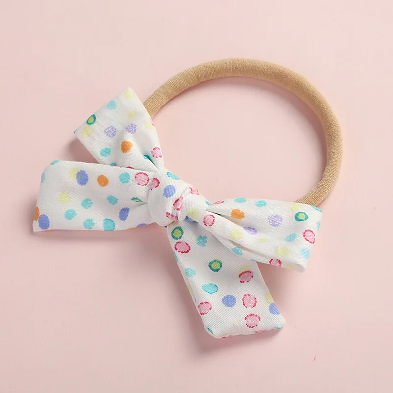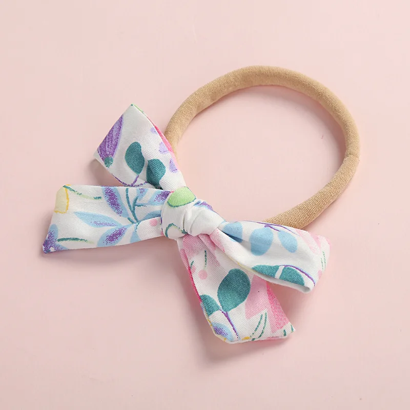 Новое поступление 2019, весенний цветной бант для волос с цветочным принтом для новорожденных, 36 шт.лот, с нейлоновой повязкой, милая реквизит для девушек, головные уборы