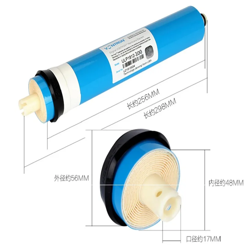 Особенности мембраны Vontron ULP1812-100:-Инновационный тонкий слой композитной мембраныПередовая мембранная технология-Обеспечивает высокую стабильность отклонения даже с высоким TDS-Меньше загрязнений, менее Частотная очистка и более последовательная-100% сухая мембрана, увеличивающая срок годности-Низкое потребление химикатов и более длительный срок службы-Стандарт NSF/anxi58Подходит для всех стандартных мембранных корпусов-Подходит для NSF