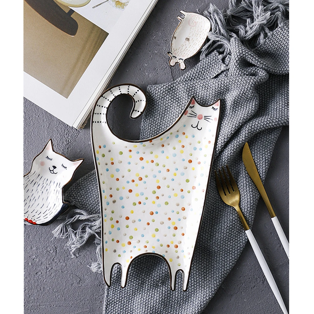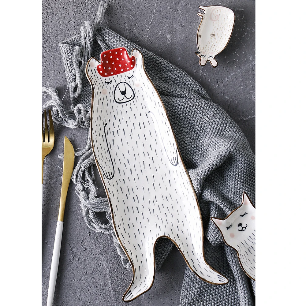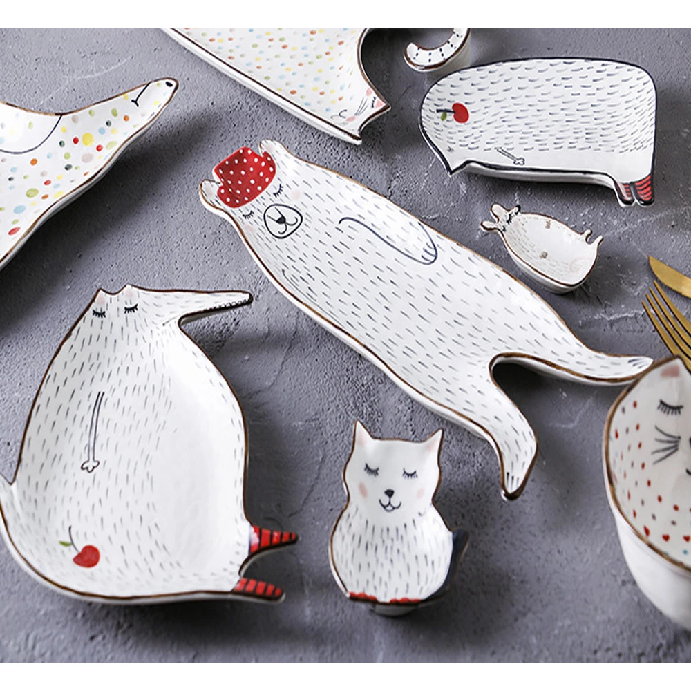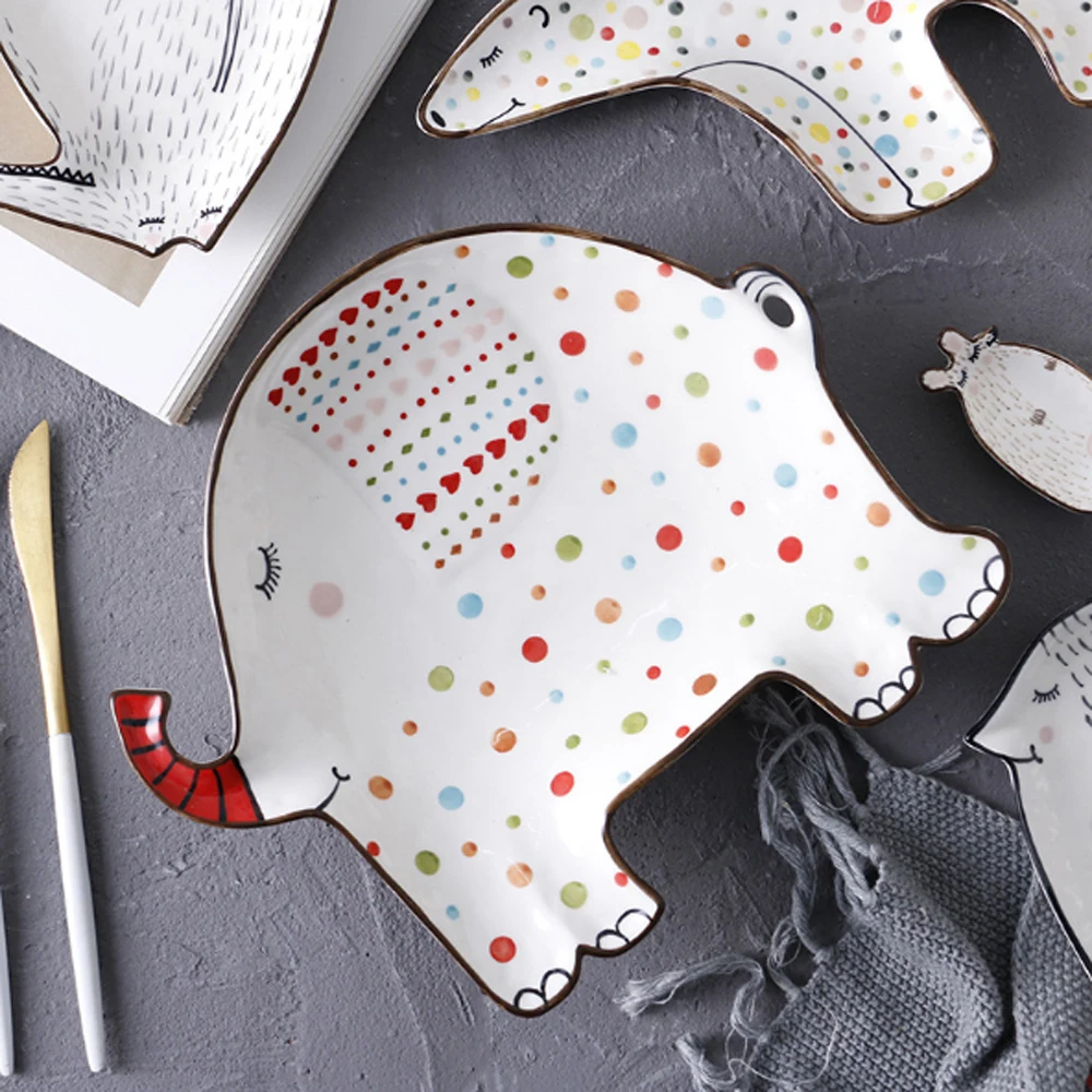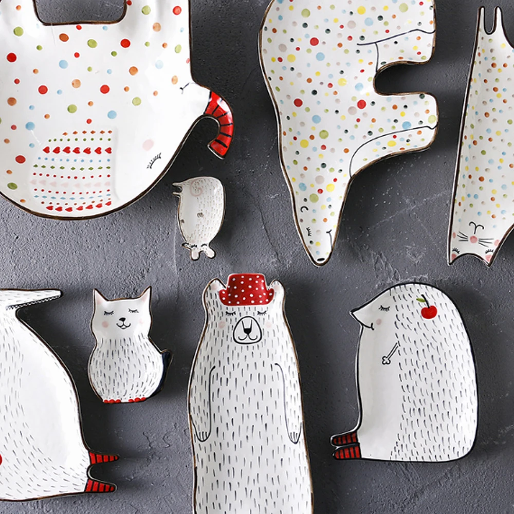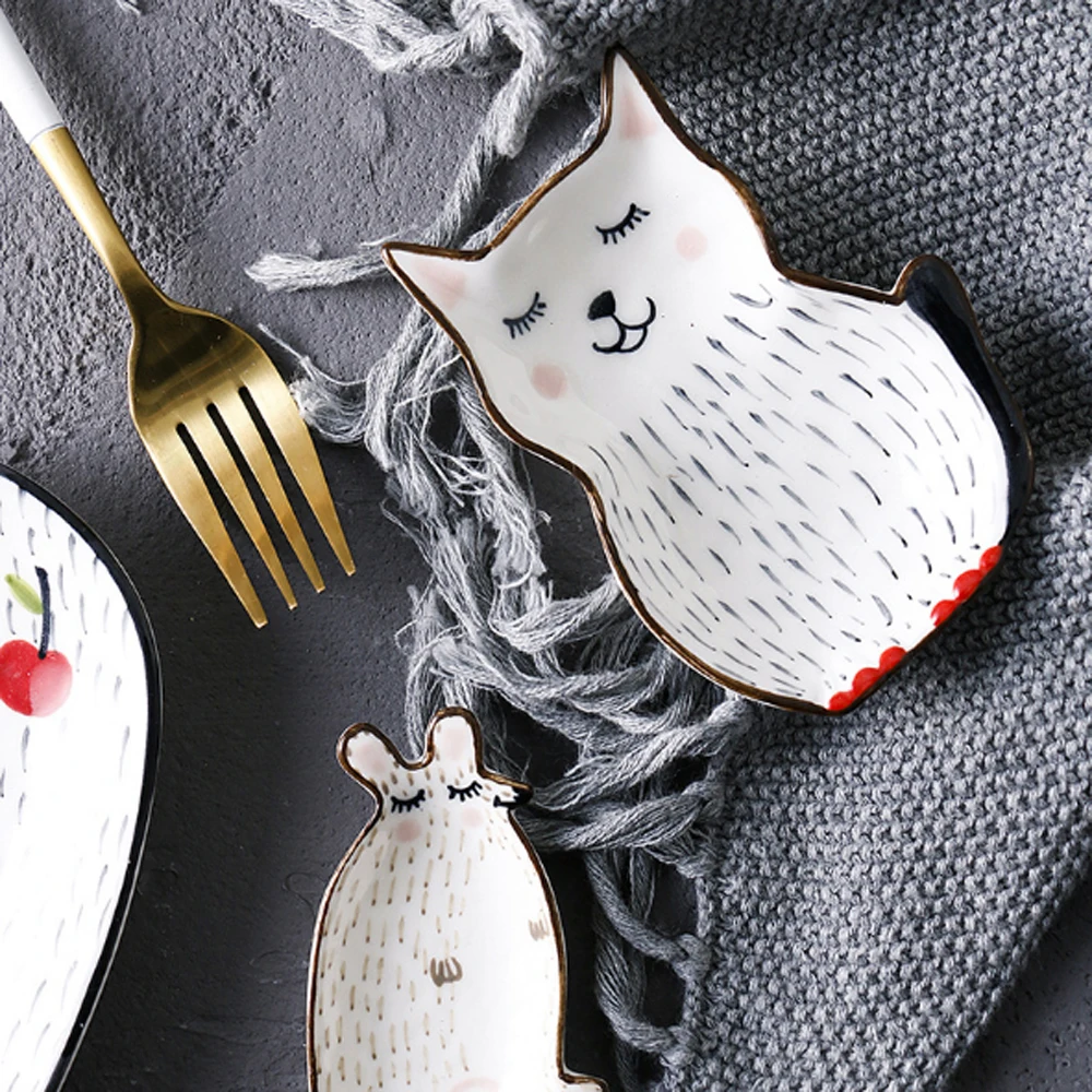 Керамическая тарелка в виде кошки, лисы, слона, медведя, животных, декоративные украшения, безделушка, тарелка, ожерелье, посуда для детей
