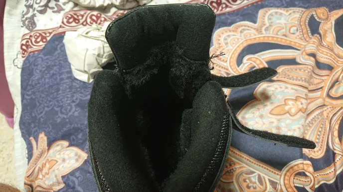 Доставка в Украину 1 месяц. Продавец, как всегда молодец: ботинки упакованы в воздушный вакуумный пакет, дополнительно положили стельки. Размер соответствует. Внутри искусственный мех, стелька вынимается (тоже искусственный мех).