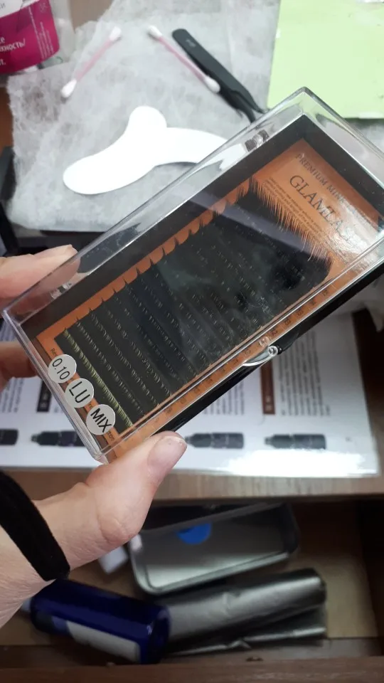 Реснички мне очень понравились , заказала толщину 0.10 на ощупь как 0.07 , очень мягкие . Заказала изгиб L, отличается от фирмы Лайвли или же бараба . Залом ни с нежным переходом , а прям углом идёт залом , то есть этим изгибом можно легко добиться эффекта стрелки !!!! Жалко что у данного продавца нет палетки с определённой длиной , а так буду заказывать ещё !!! Фото уже в работе .