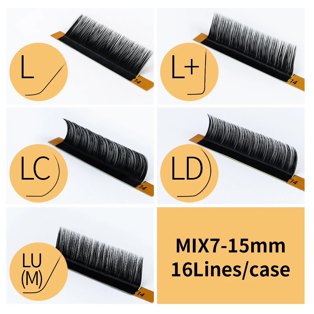 LL +LCLDLU(M)N завиток 7 15 мм, 16 рядовчехол для наращивания норковых ресниц, L отдельные ресницы, L ресницы, L накладные ресницы