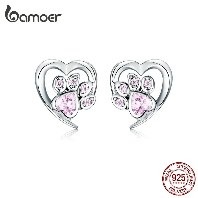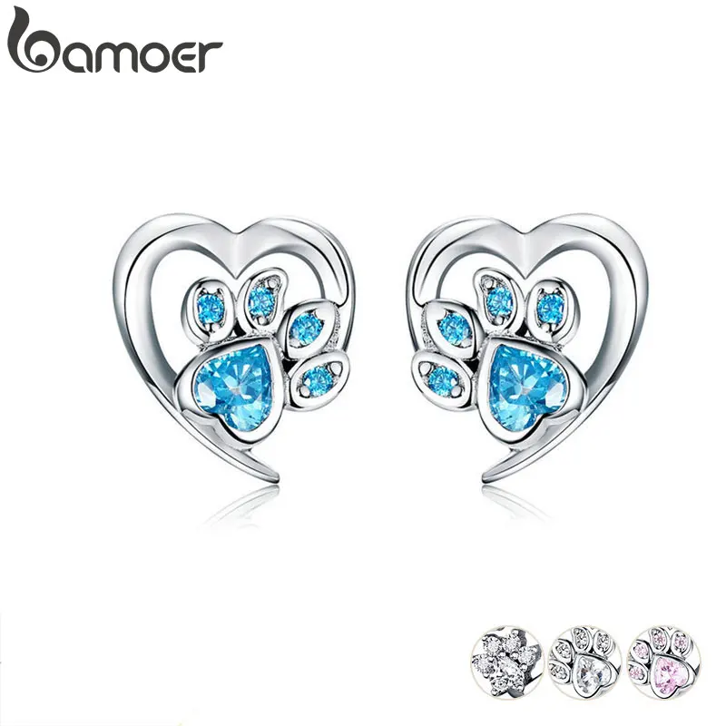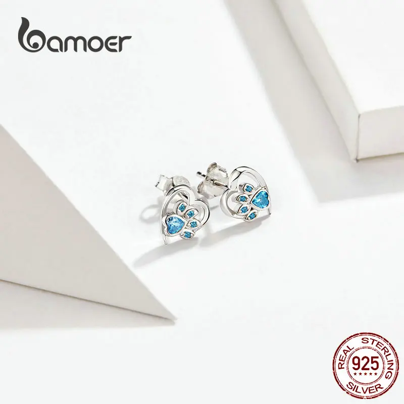 Серьги-гвоздики bamoer с голубыми кристаллами в виде лап для девочек, серьги-гвоздики в форме сердца с кубическим следом, ювелирные изделия для женщин, 2021, новый дизайн, Bijoux SCE654
