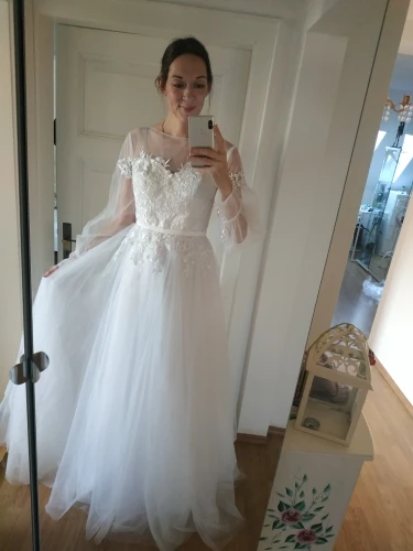 Люблю это платье! Ранее я покупал его где-то еще и не был влюблен. Эта идея привлекла меня, и я получил шанс. Я так рад, что сделал это! Я не могу дождаться своей свадьбы, чтобы носить эту красоту!