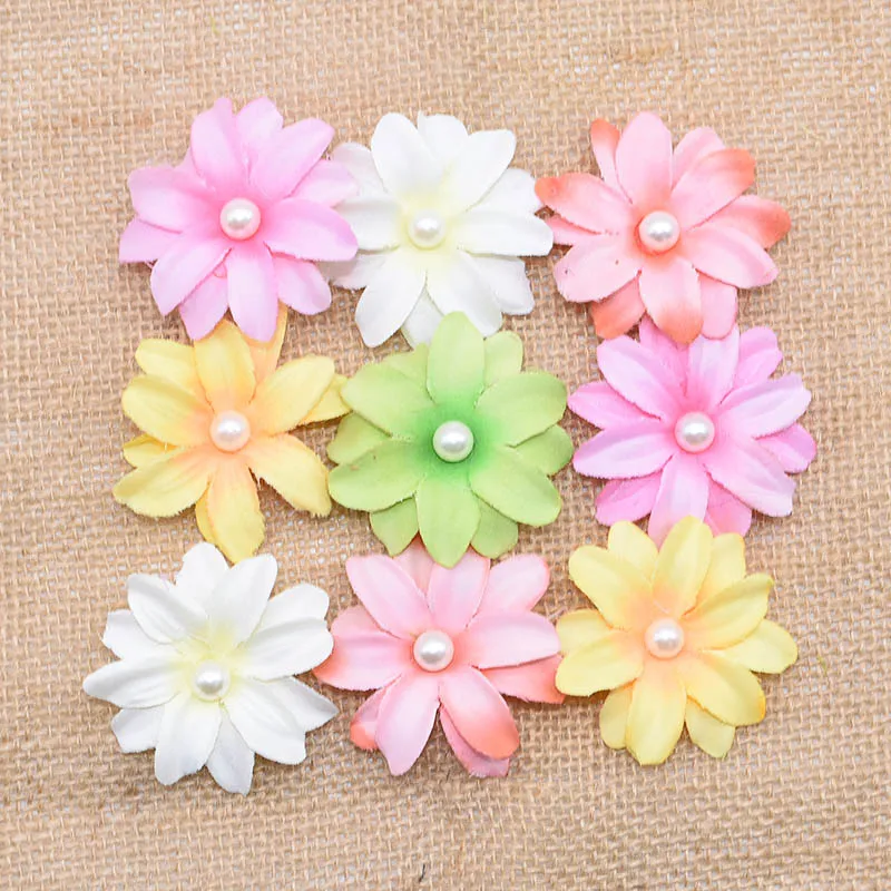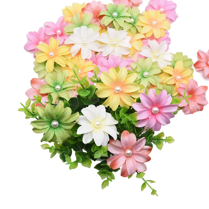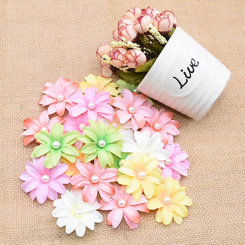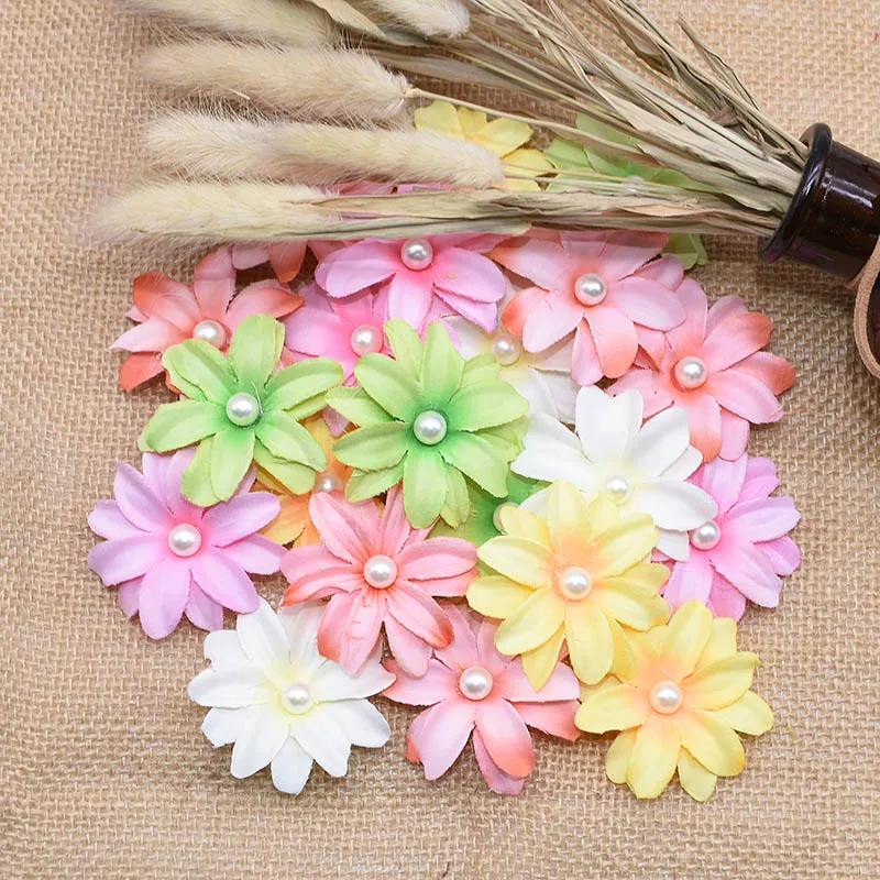 Искусственные шелковая Цветочная головка с жемчугом 5 см для украшения свадьбы, дня рождения, венка сделай сам, принадлежности для шитья, 2050 шт.