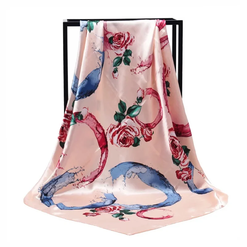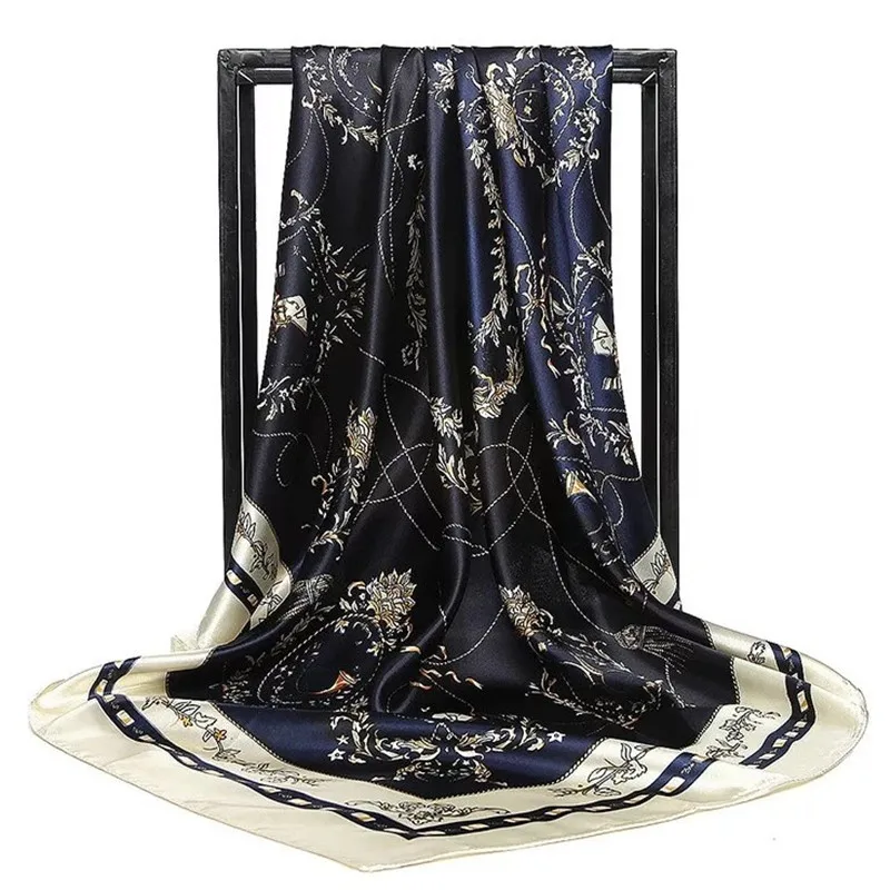 Большой хиджаб, шарфы для женщин, модный Шелковый атласный шарф с принтом, женские квадратные шали 90x90 см, роскошные брендовые шарфы на голову для женщин