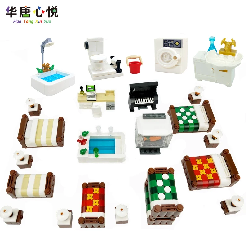 Друзья хартлейк дом комната двуспальная кровать диван пианино стол сцены фигурки строительные блоки MOC аксессуары Запчасти игрушки друг