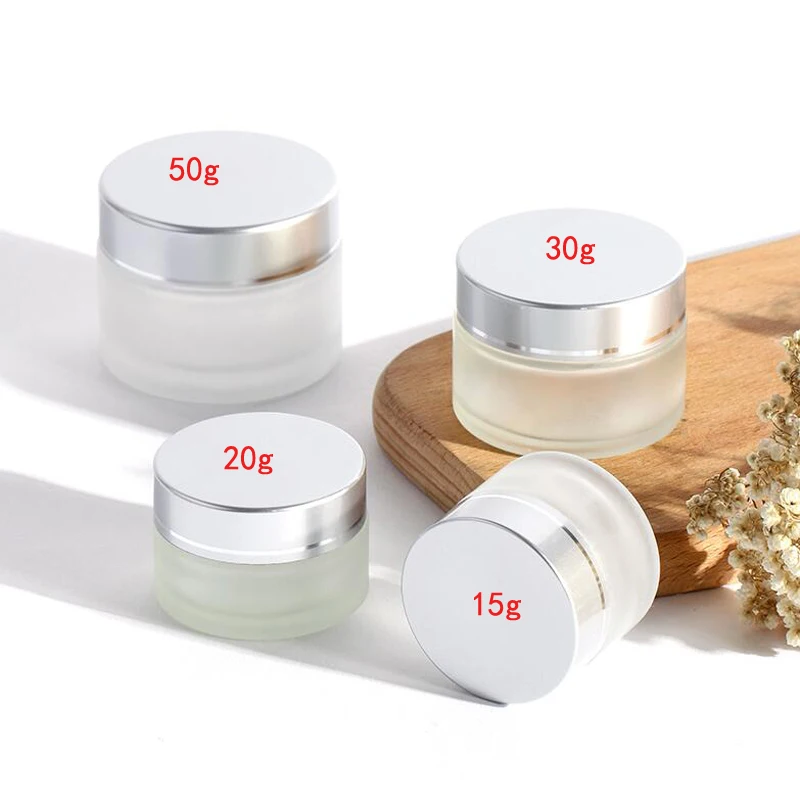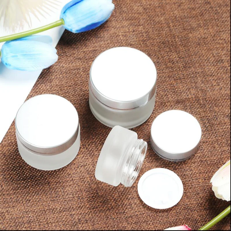 Горячая Распродажа 5G10 г20 г30 г50 г матовая стеклянная баночка для крема, косметический контейнер бутылках косметические банки в бутылках серебряной крышкой стеклянные бутылки 6 шт.лот
