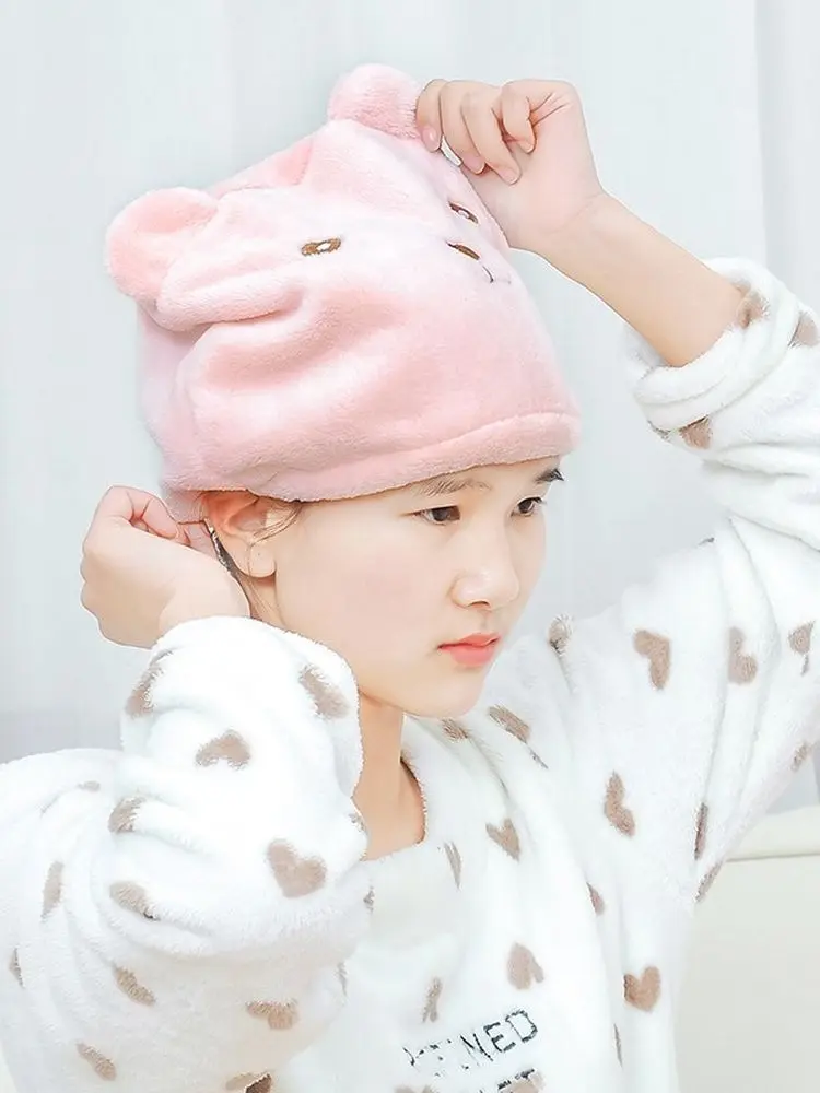 1 шт., шапочка для душа с милым медведем из микрофибры, тюрбан с шапка для быстрой сушки волос, полотенце, шапочка для ванны
