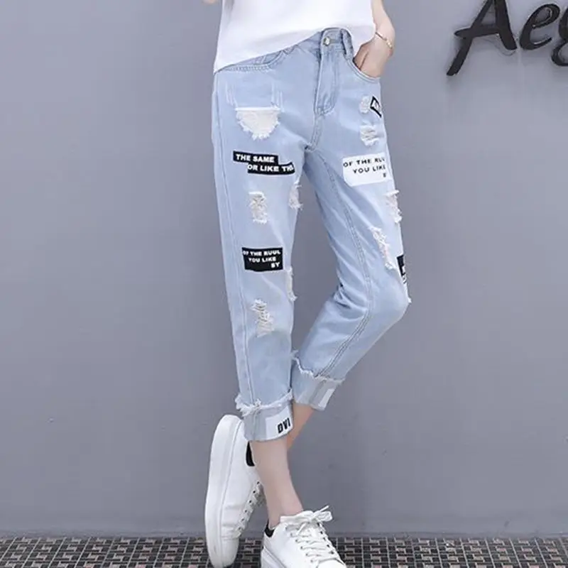 Новые летние женские джинсы 2022, повседневные женские брюки, модны...