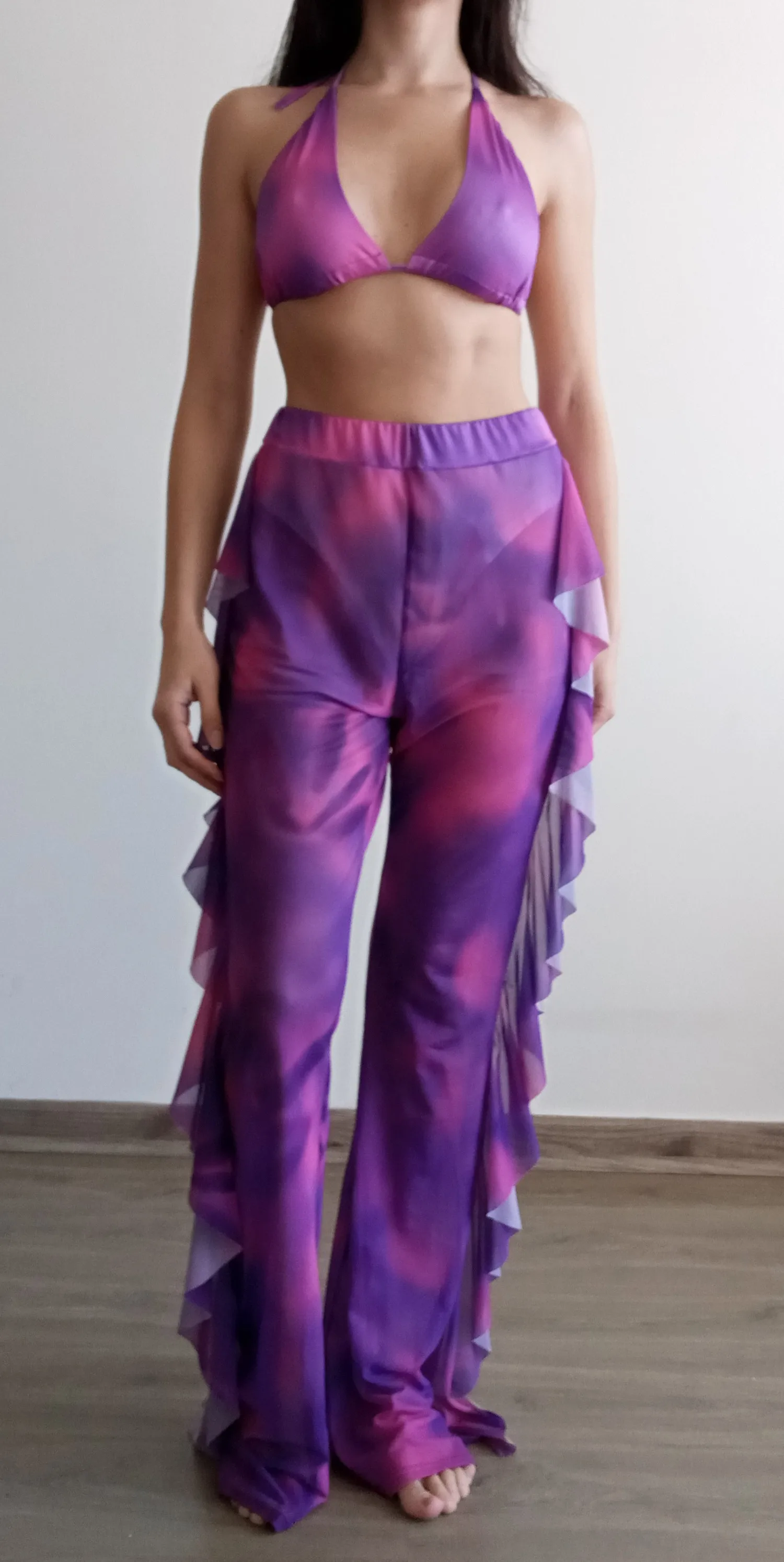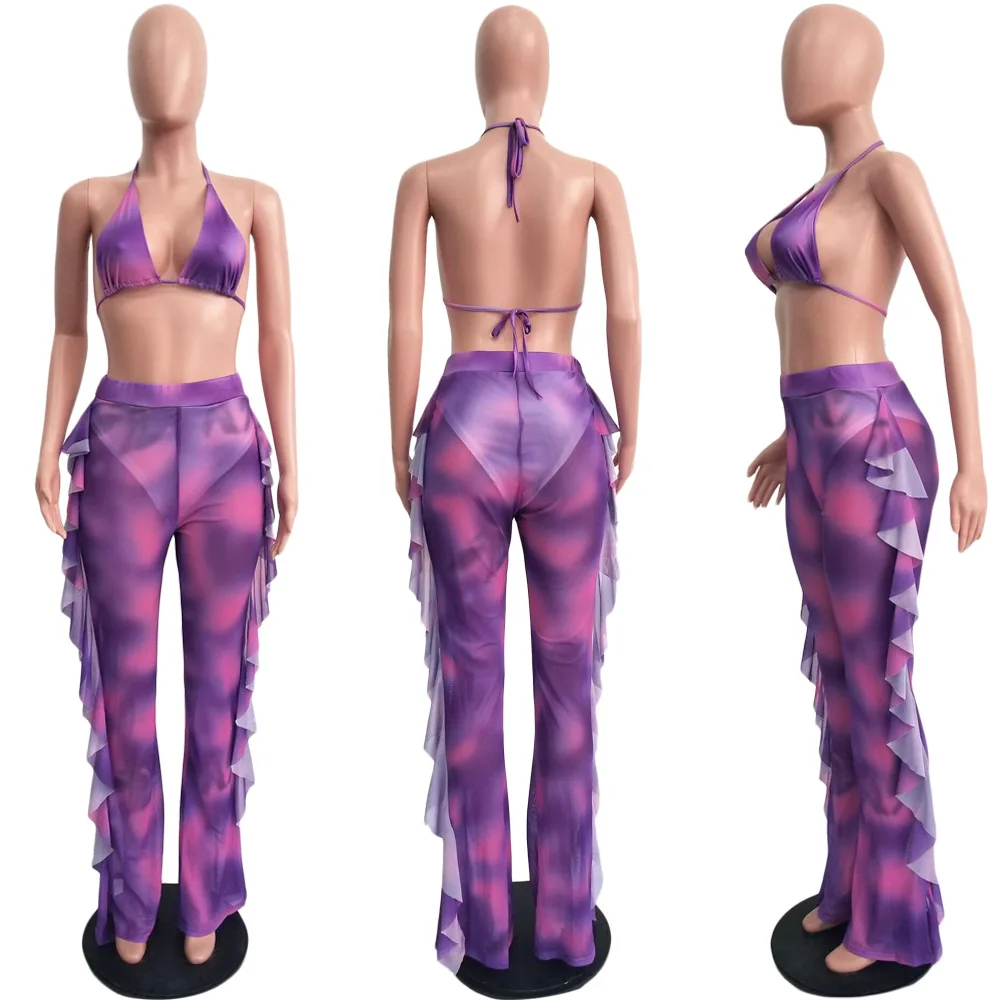 Женский пляжный комплект из двух предметов, с принтом тай-дай, с трусиками и широкими штанинами