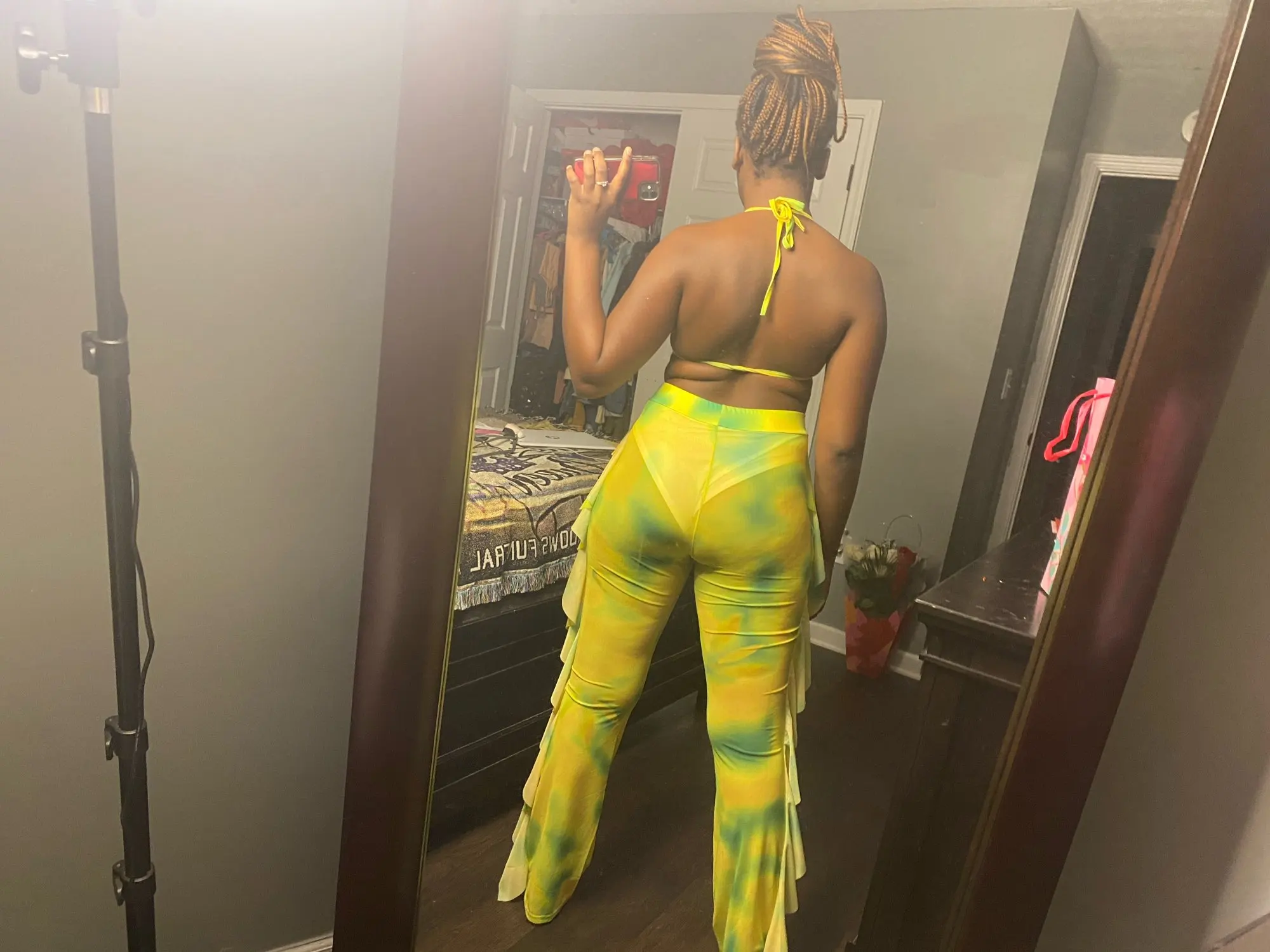 Я заказал розовый и фиолетовый принт, но вместо этого получил розовый и желтый. Отлично сидит, поэтому просто сохранит его.
