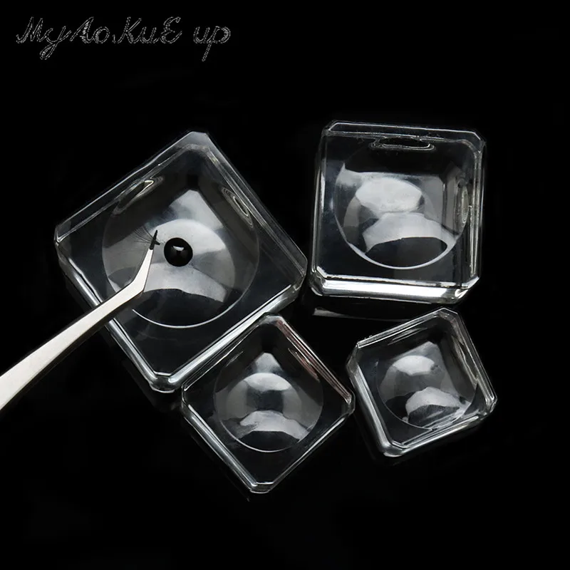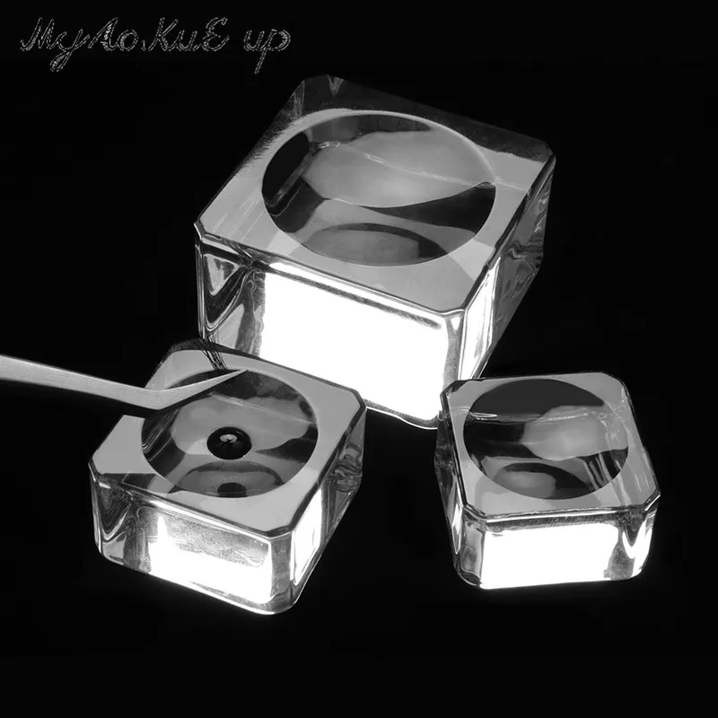 Квадратная подставка для накладных ресниц из хрустального стекла, 4 размера, держатель клея для ресниц, подставка для клея, инструмент для макияжа