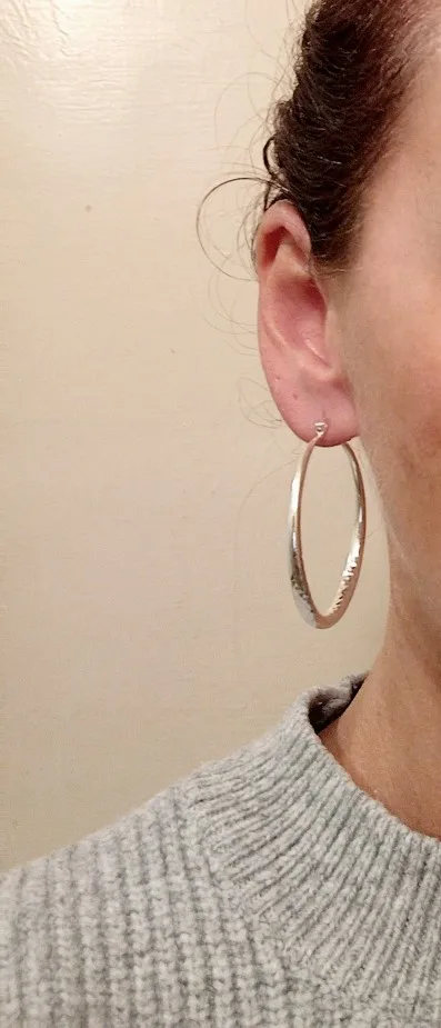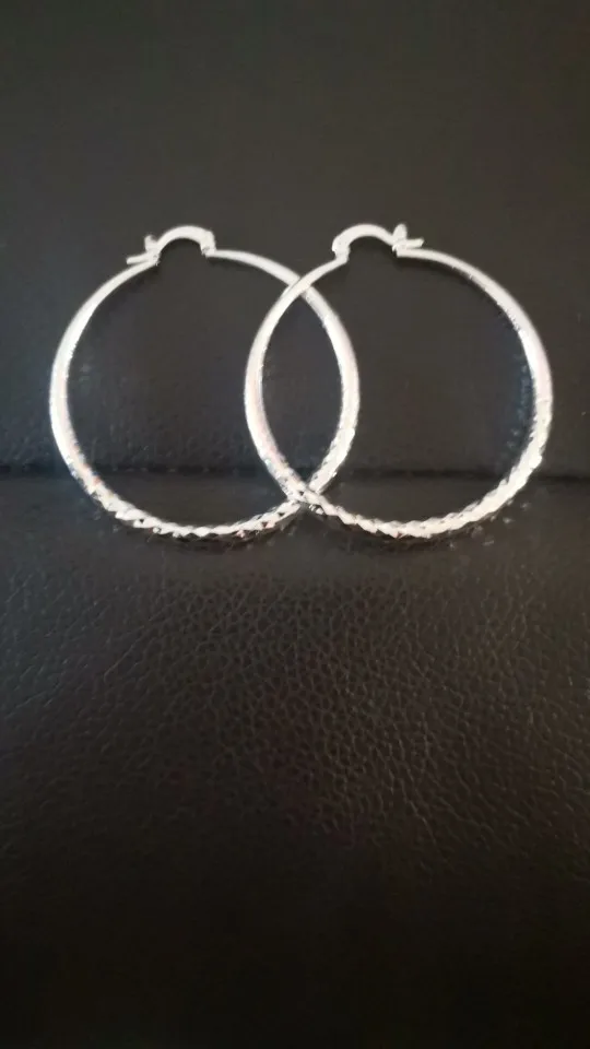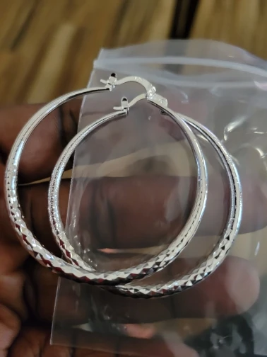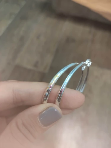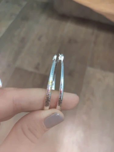 Серьги классные.Стоит проба .Но надо принаровиться,чтобы закрыть замок на ухе или открыть. Приятно чувствуется вес,хоть они и лёгкие.За час ношения колец уши не заболели.Не знаю ,какие будут ощущения при ношении целый день. Будет аллергия,тогда отзыв дополню.