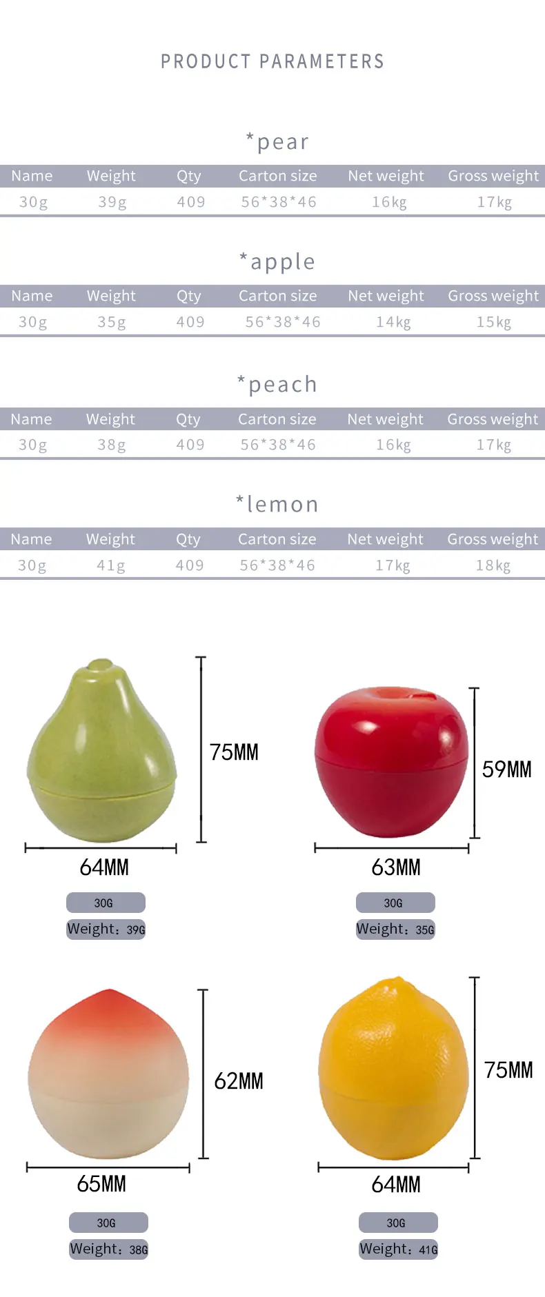 1 шт.деликатная пластиковая косметика в форме фруктов, персик, груша, лимон, яблоко, пустые косметические контейнеры для путешествий, портативные